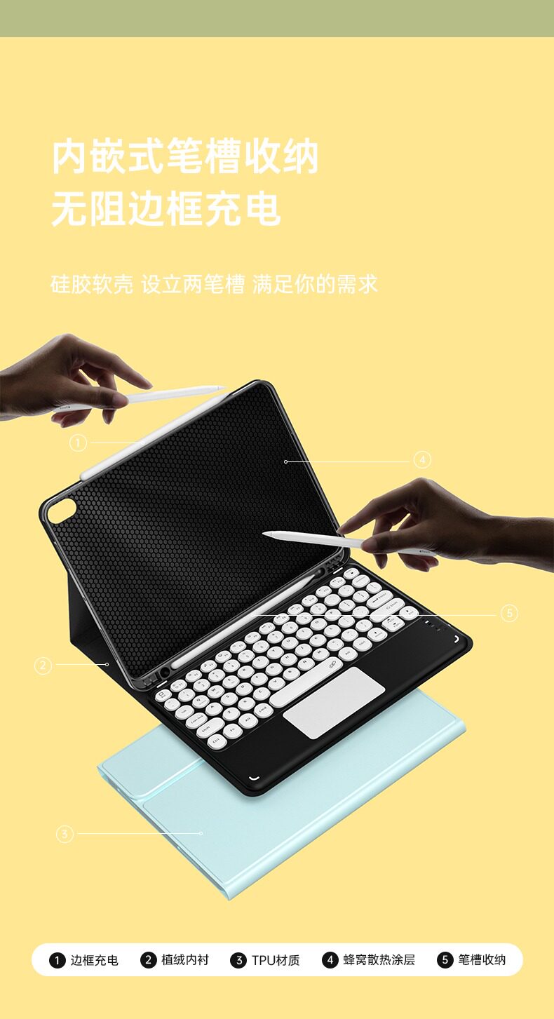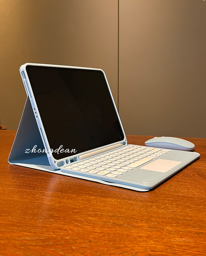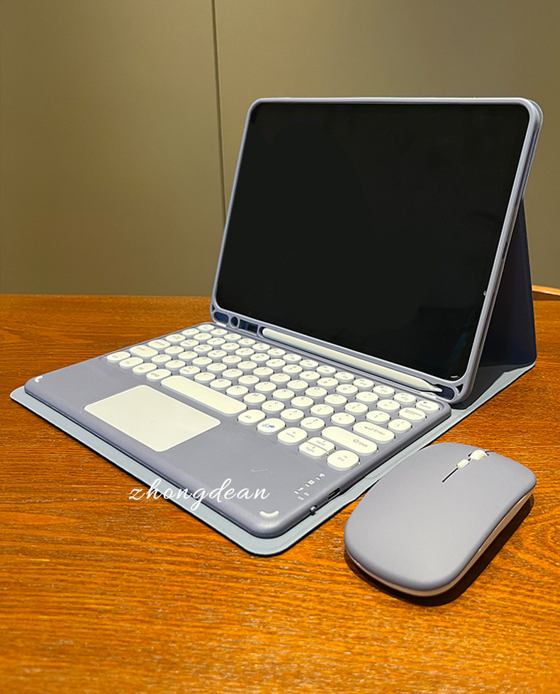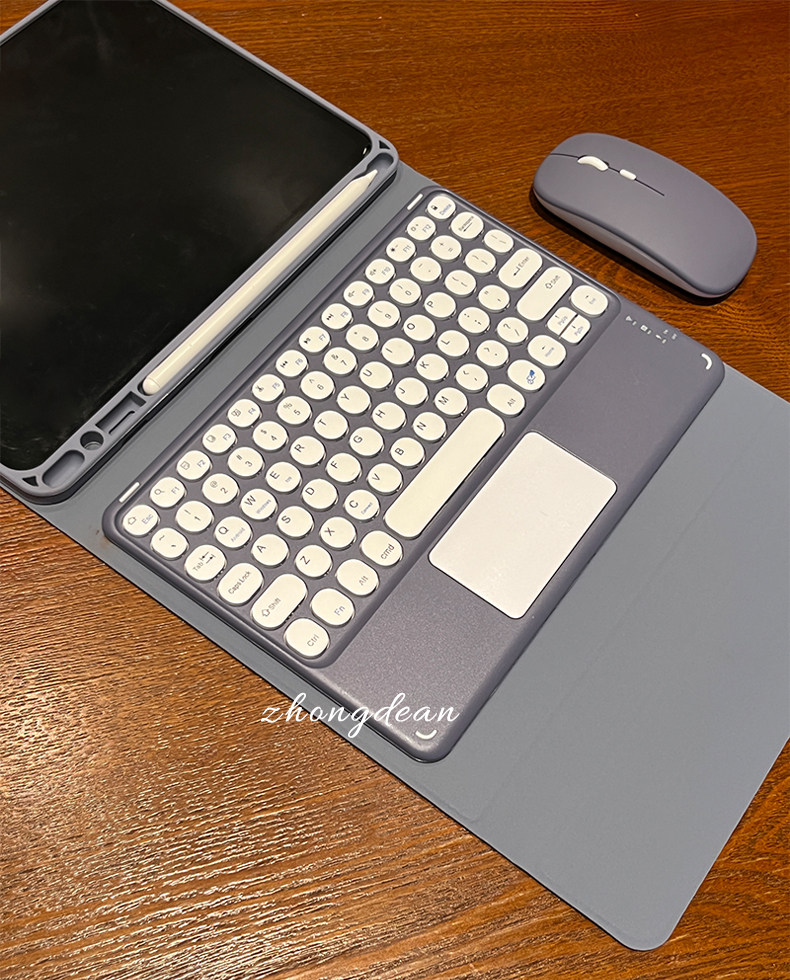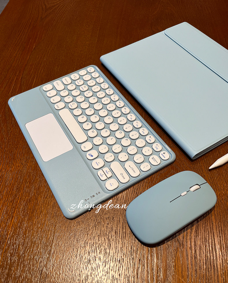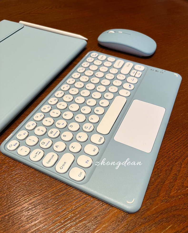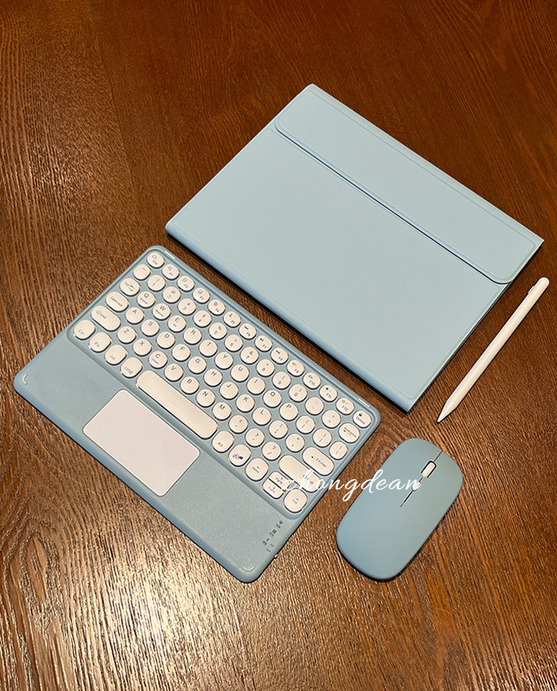 - [Mist Blue] Круглая клавиатура + кожаный чехол