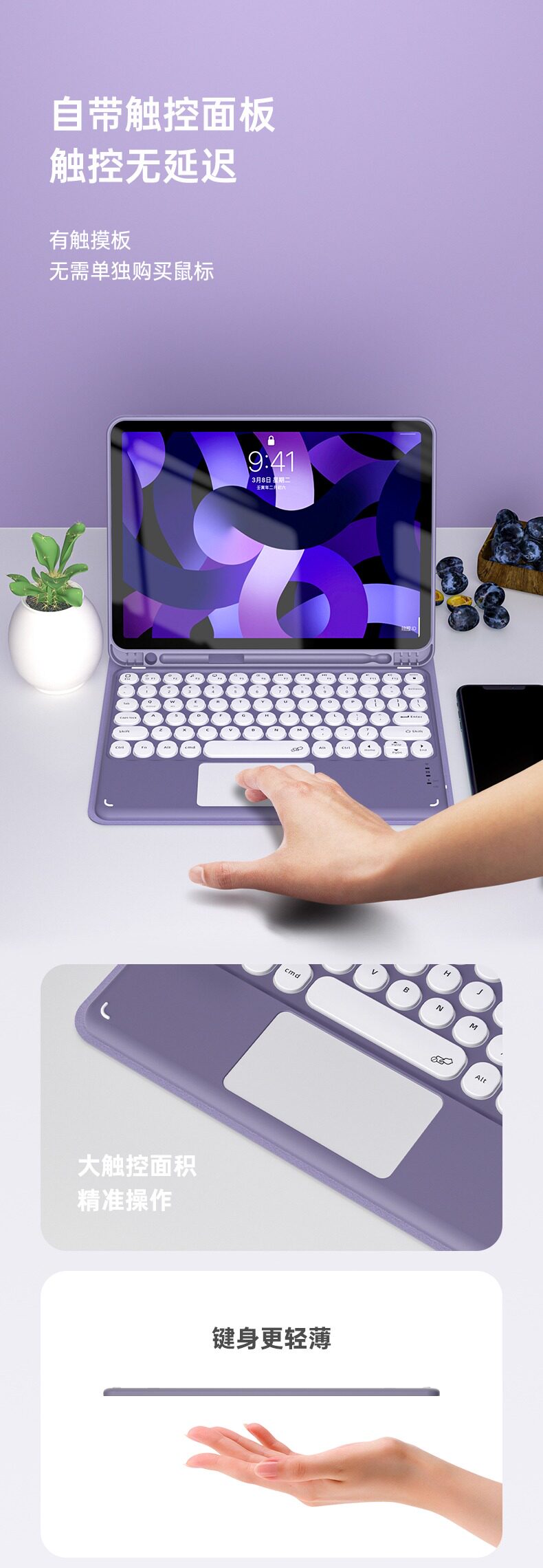 - Сиреневая клавиатура, чехол, мышка с зарядкой