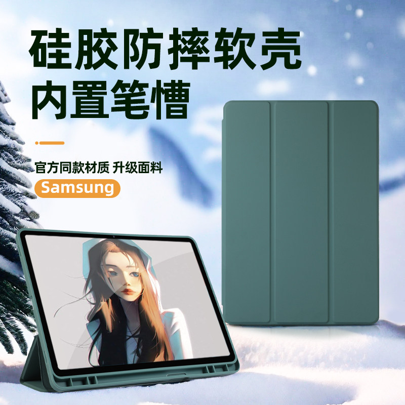 Samsung Tabs9 Flat Panel Protective Case Tab A8 Case S7 Fe/S8+ Plus, подходящий для Ultra с слотом для ручки 12.4 Отпечаток пальцев, разблокирующий A7 Силикон S6 Lite Anti-Fall 11-дюймовый A9+ Soft Case 8.7