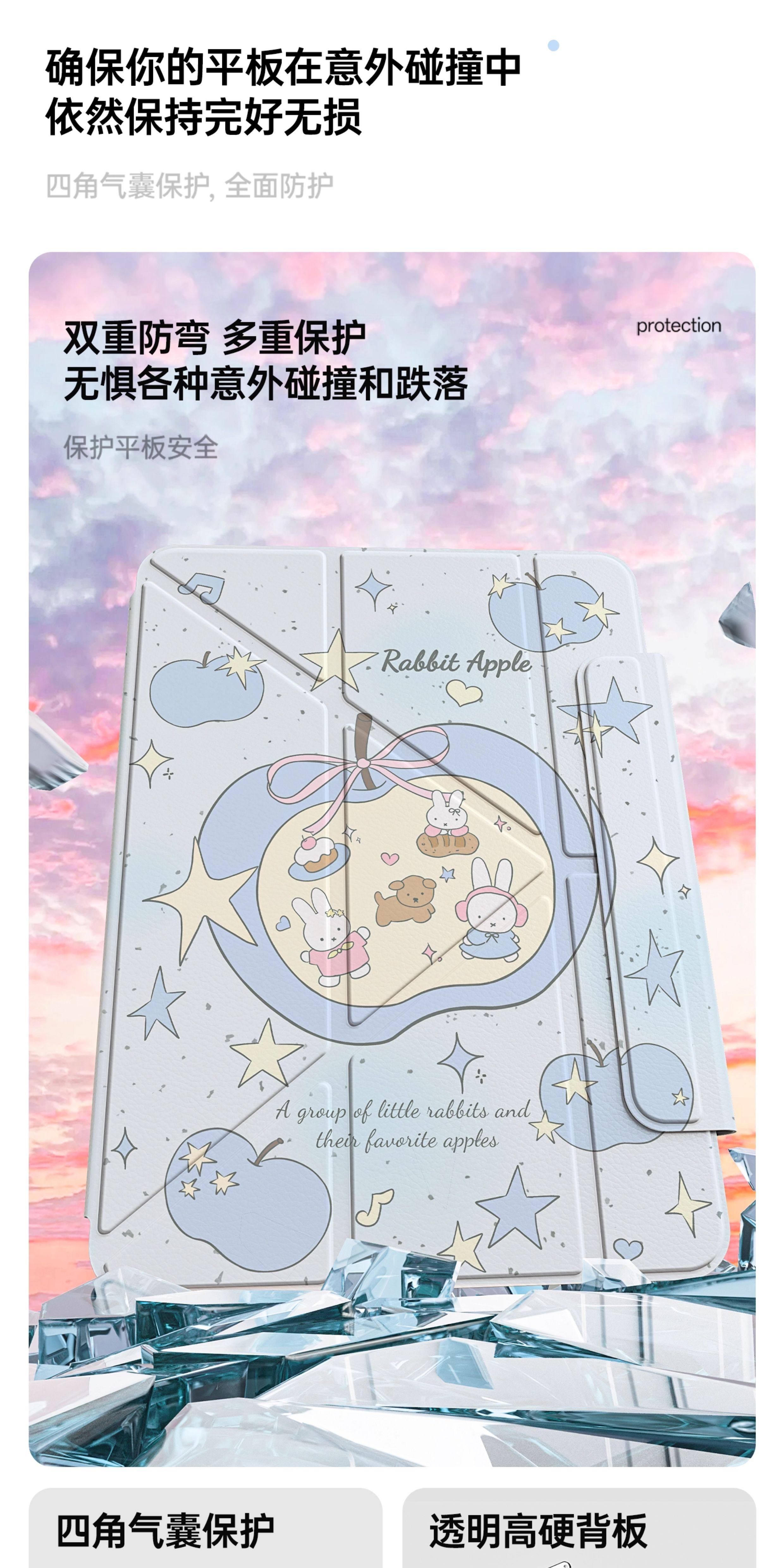 Защитный чехол для iPad11 Air7 подходит для Apple proЗащитный чехол на 11 дюймов Вращение на 720 градусов Складывание в 3 года mini7 с магнитным разделением 10 поколений 9 Прозрачный Air6 Слот для ручки 5 Планшет 13 Акрил 4 с защитой от изгиба 12,9