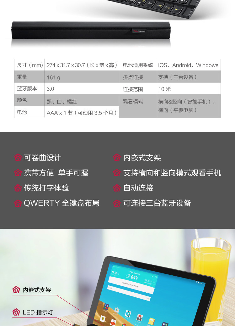 LG Rolly 2 Беспроводная Bluetooth-клавиатура клавиатура клавиатуры второго поколения KBB-710 может быть сложен и портативна