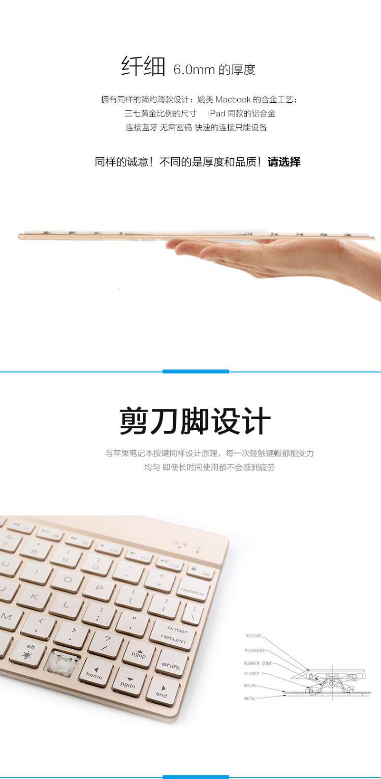 Apple, совместимая металлическая легкая и тонкая клавиатура, bluetooth, 6