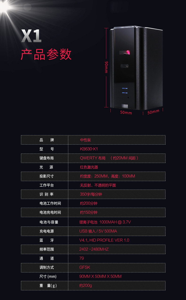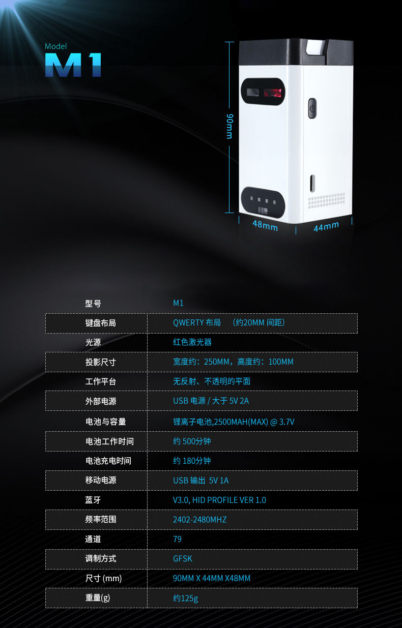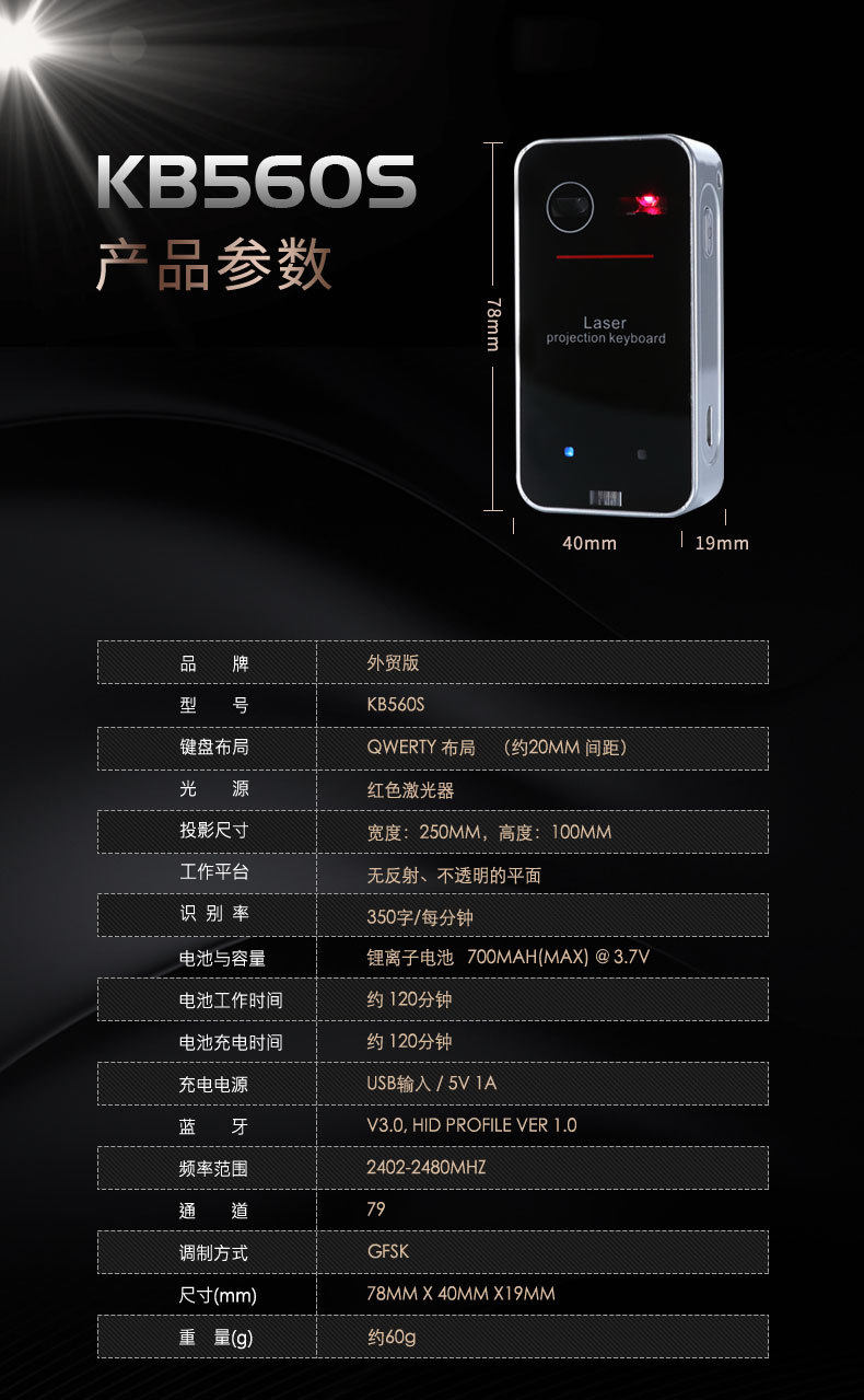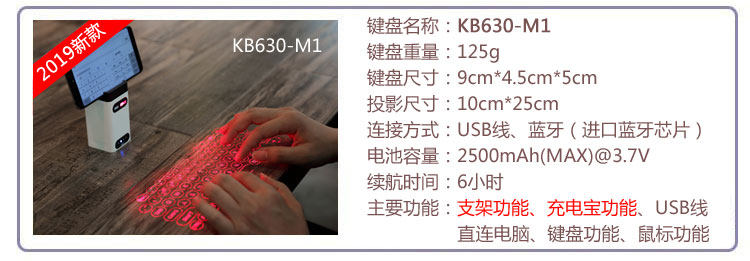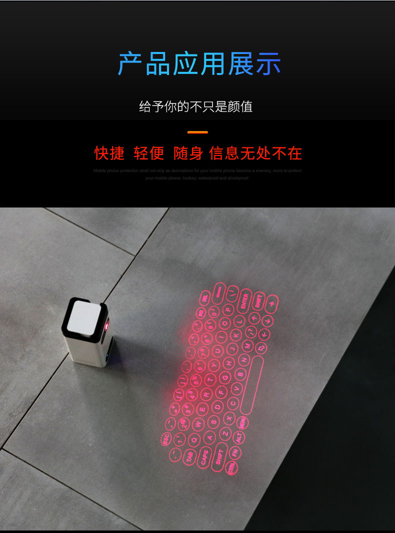 酷班 Проекционная клавиатура Bluetooth Wireless Laser Virtual Projection Compult Compult Ipad Infrared Black Technology