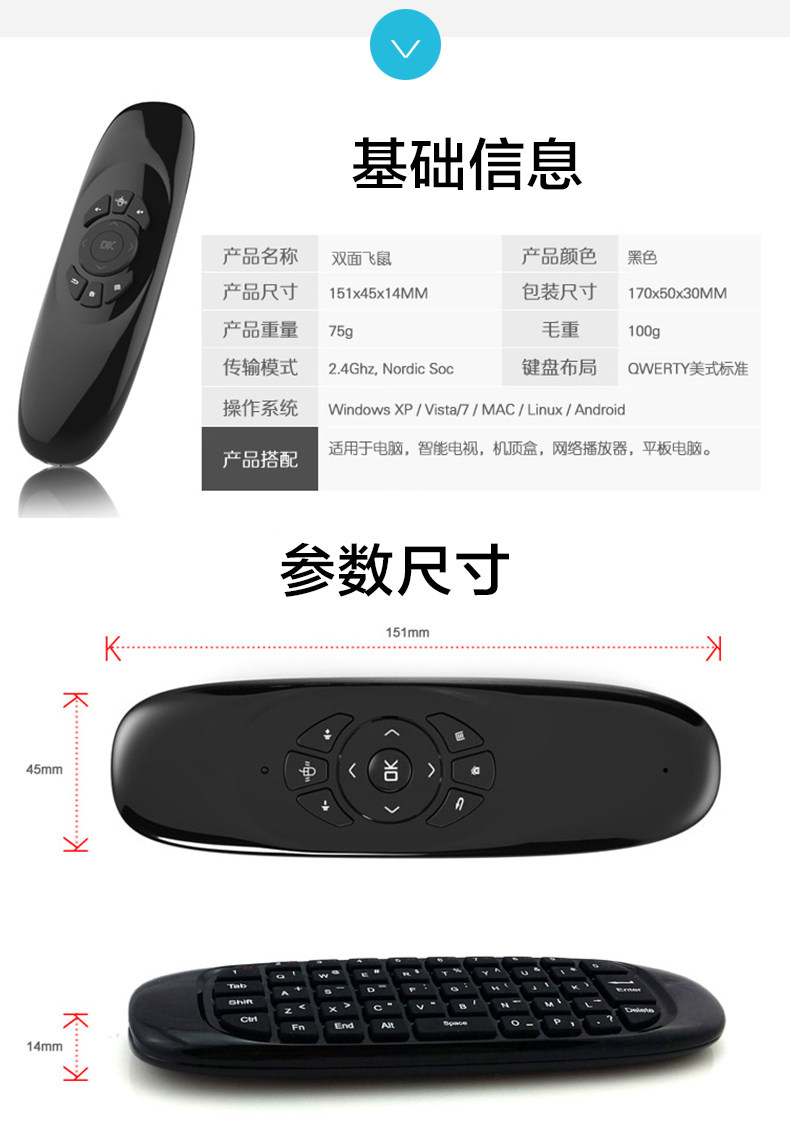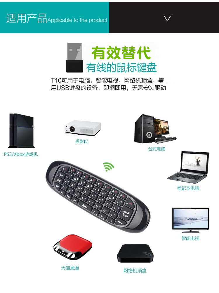 Маленькая беспроводная портативная клавиатура, умный ноутбук, телевизор, гироскоп, пульт, T10