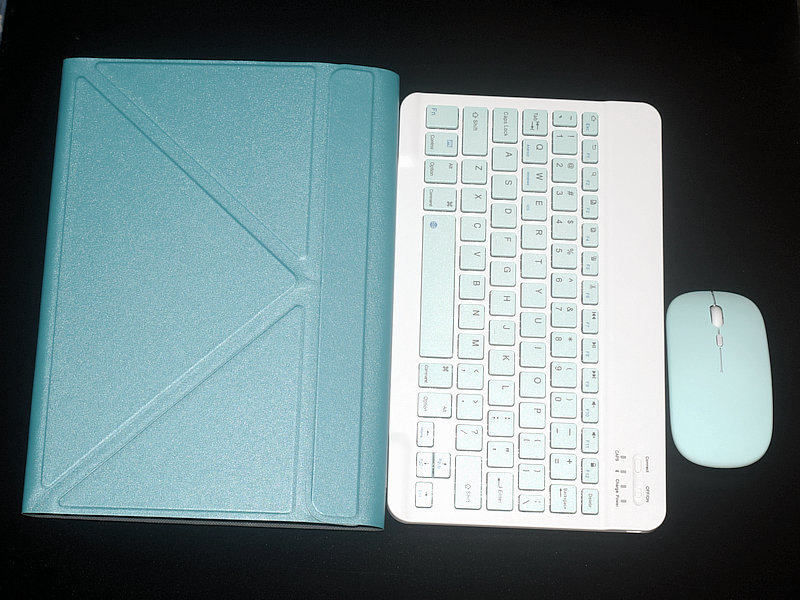 - Лазурная клавиатура, мышка, чехол, полный комплект