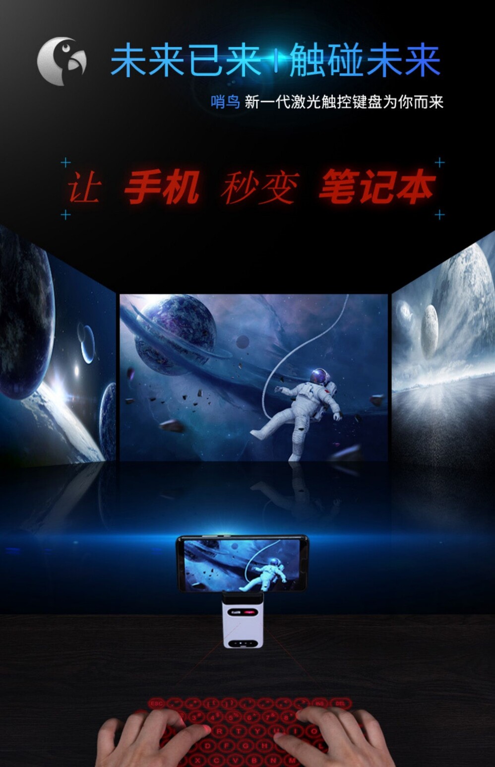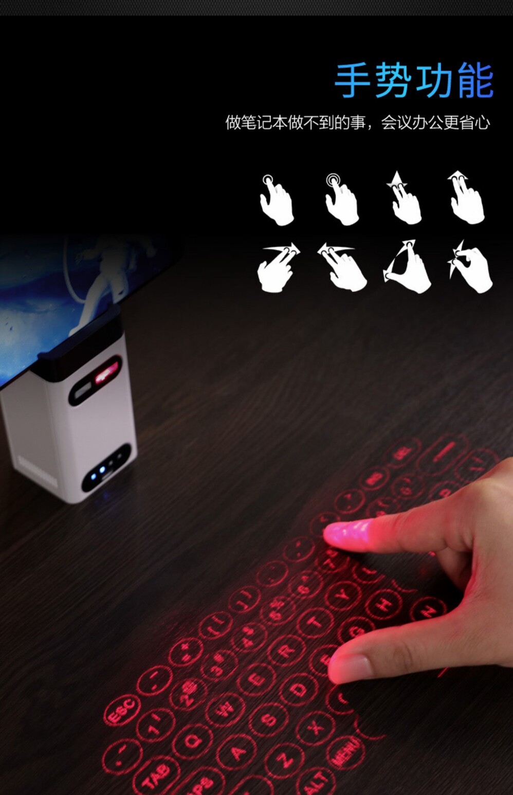 Сенсорная портативная складная беспроводная клавиатура, проектор, наука и технология, bluetooth, подарок на день рождения