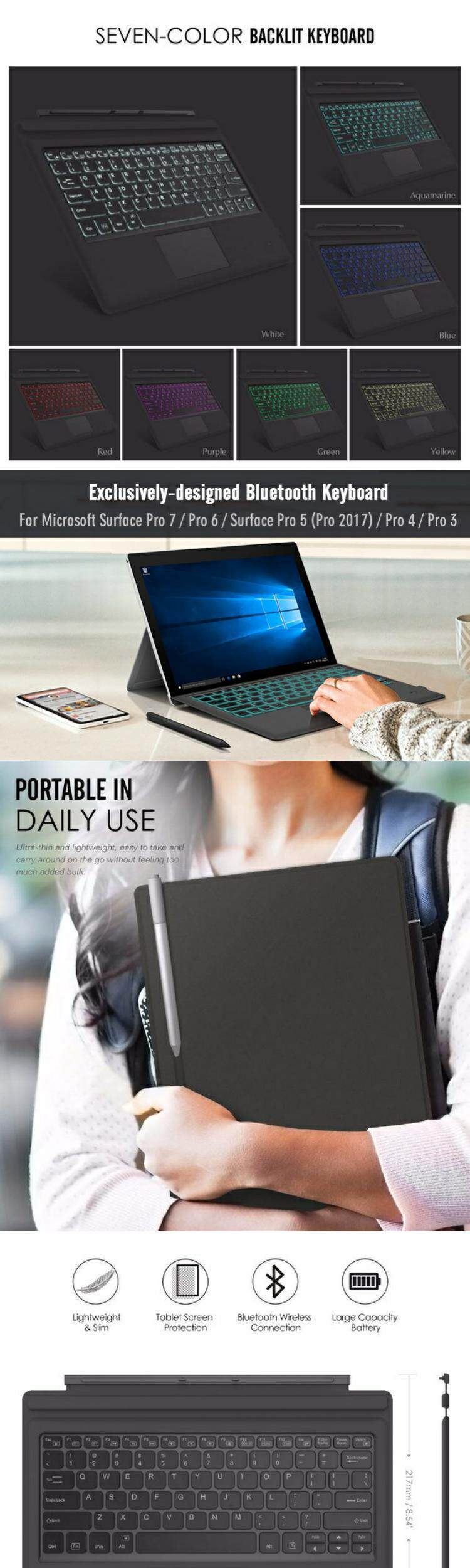Surface Pro7/Pro6/4/Pro 5 Беспроводная клавиатура с трекпадом
