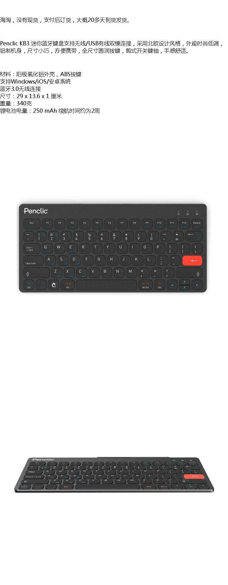 Пекатор Nordic Style Mini Bluetooth клавиатура Bluetooth Dual -мода поддерживает Wireless/USB -проводное соединение.