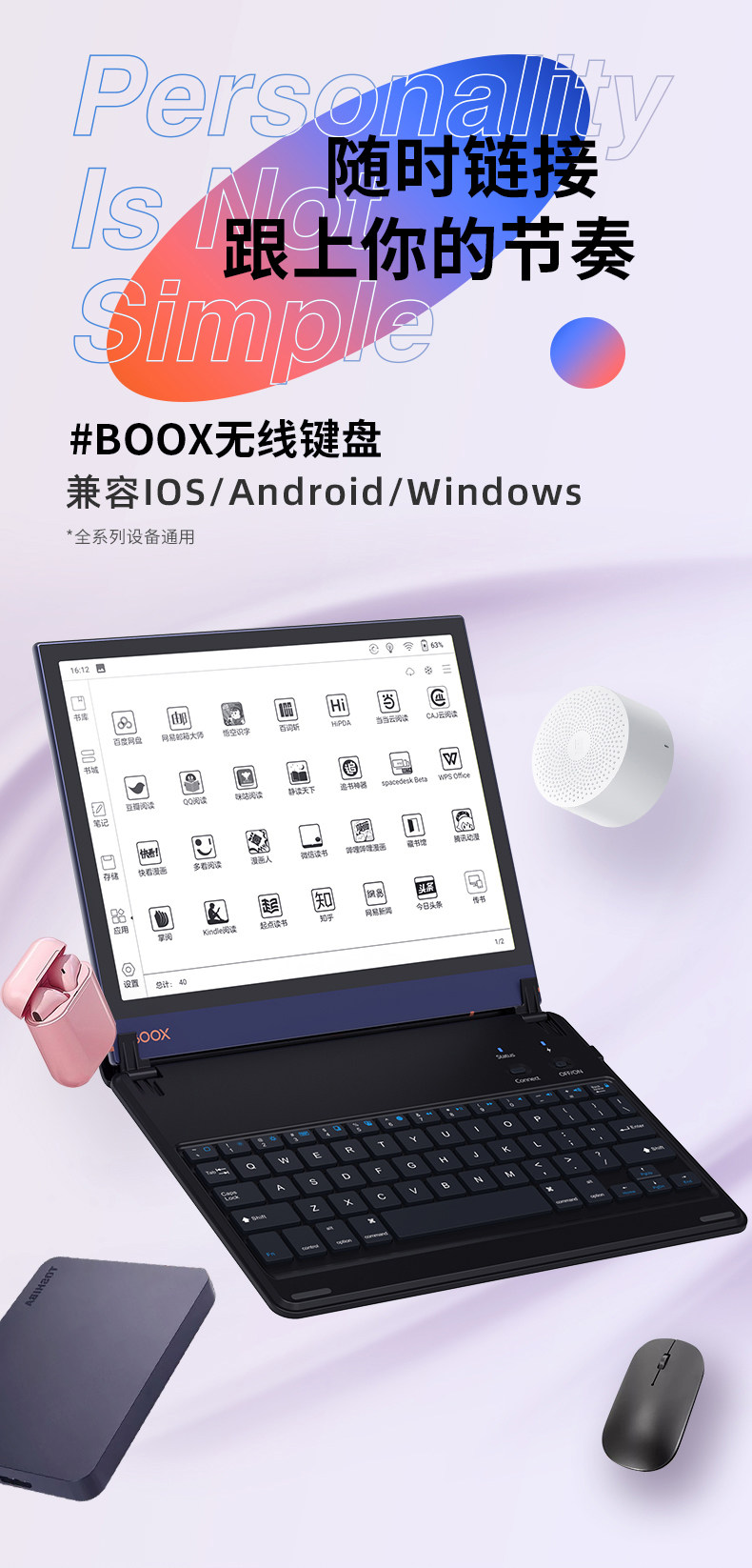 Беспроводная клавиатура, совместимое ультратонкее оборудование, беззвучный планшетный универсальный ноутбук, 10.3 дюймов