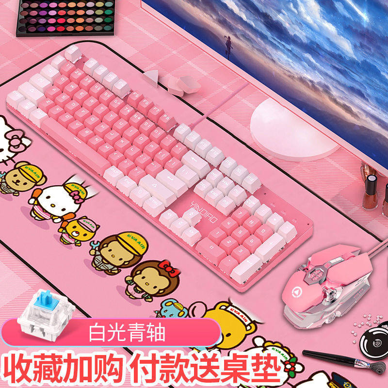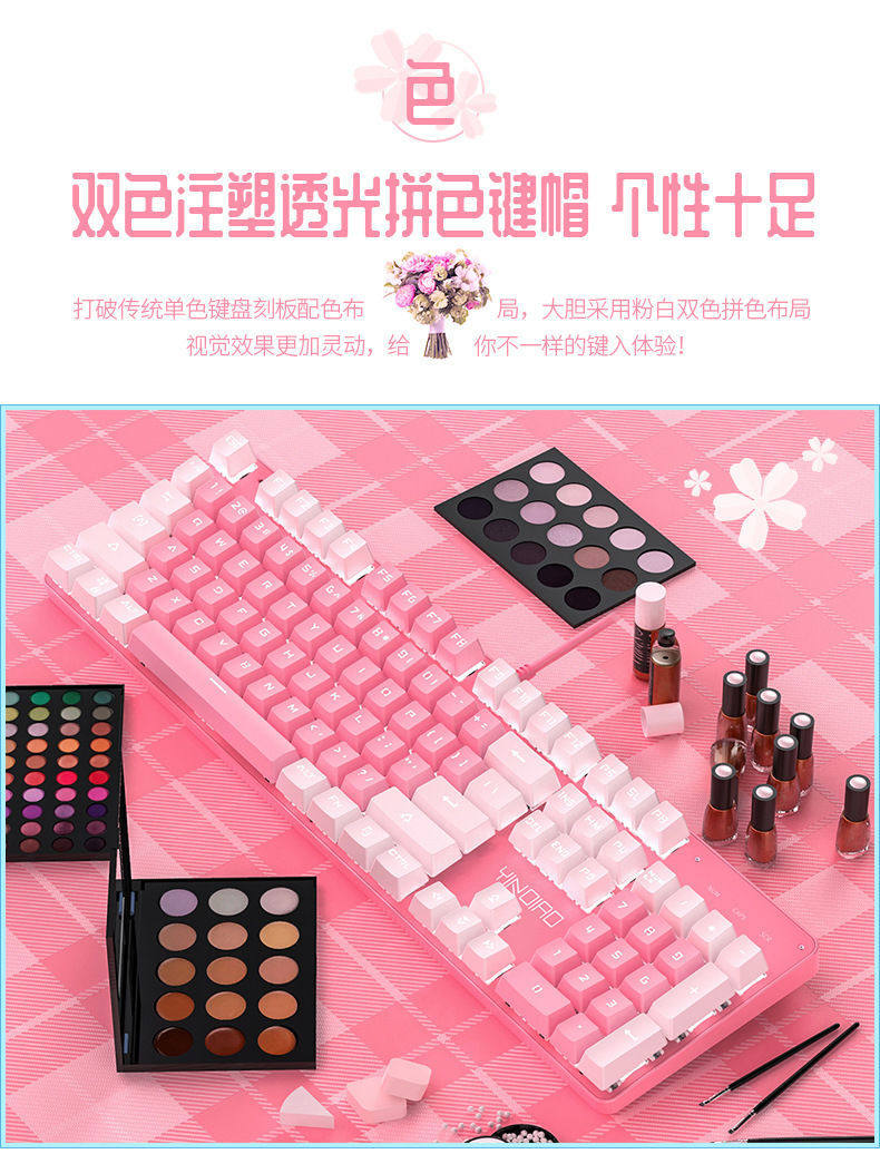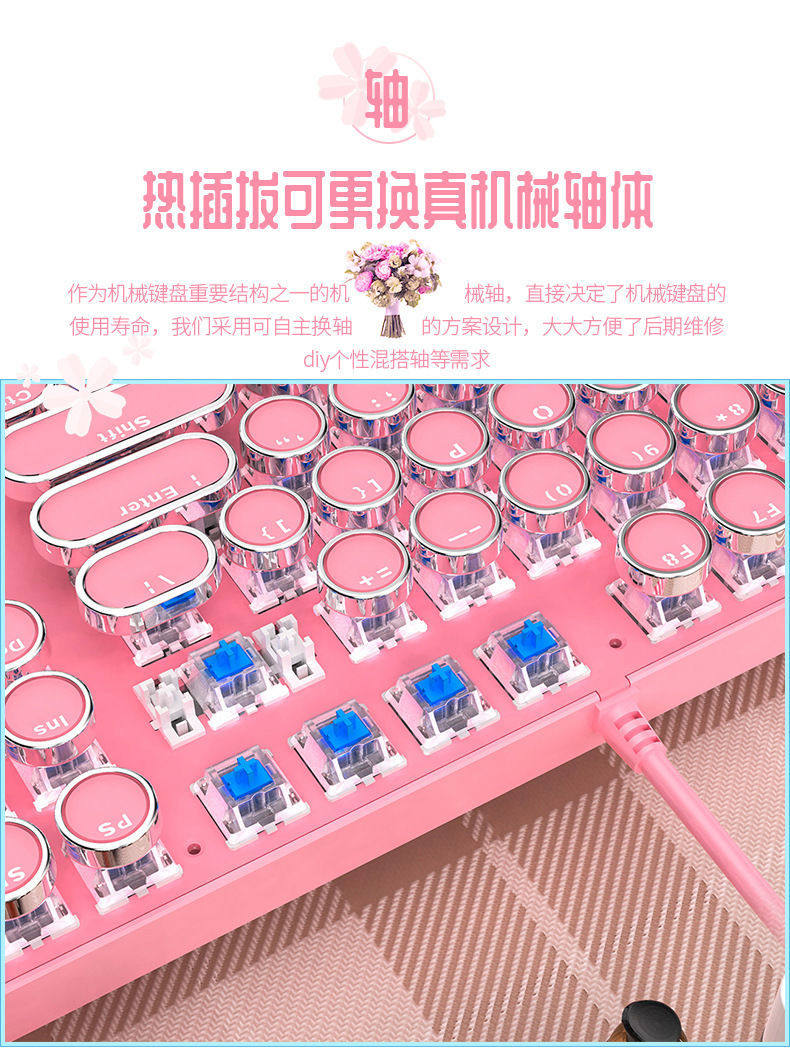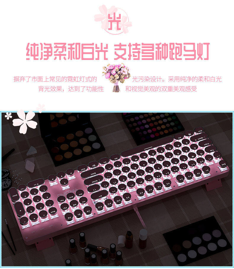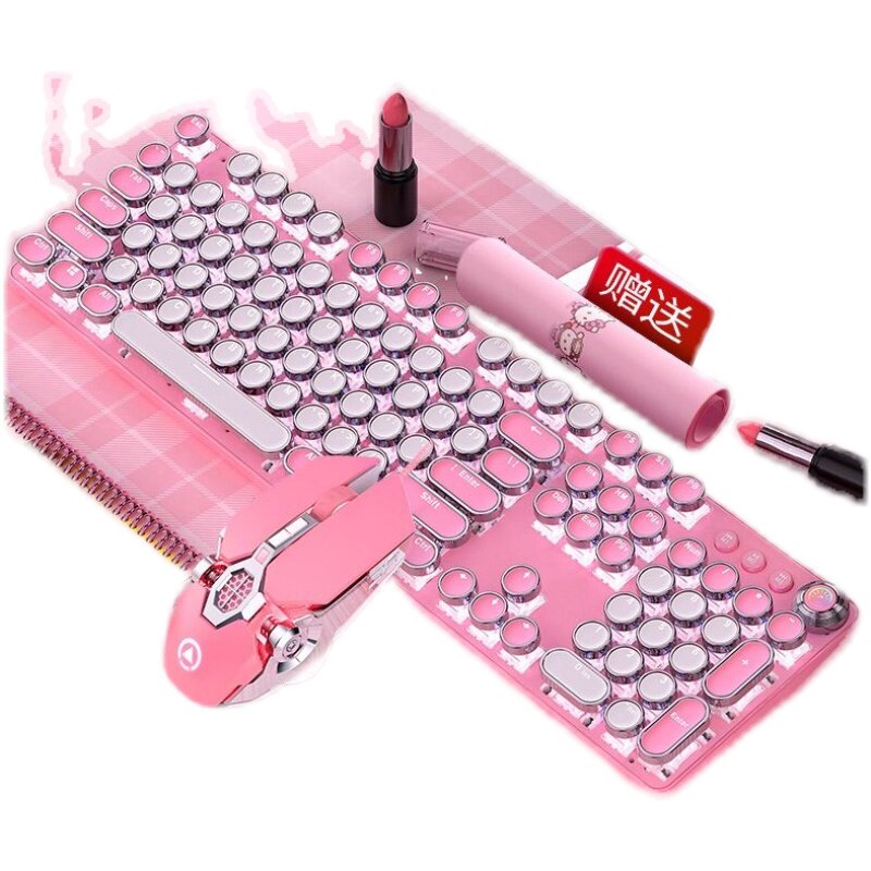 Механическая клавиатура, мышка, розовый комплект, ноутбук, в стиле панк