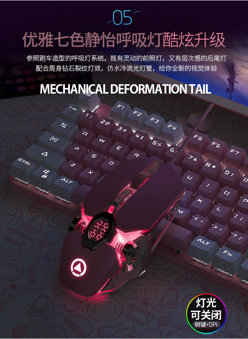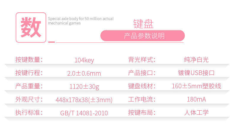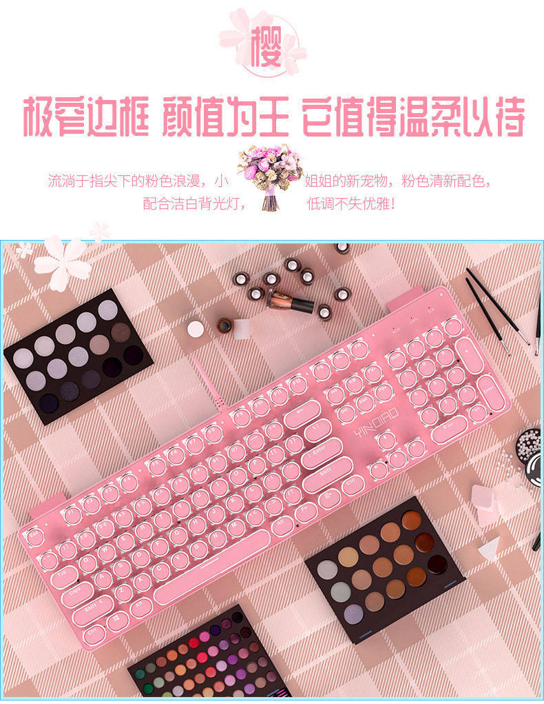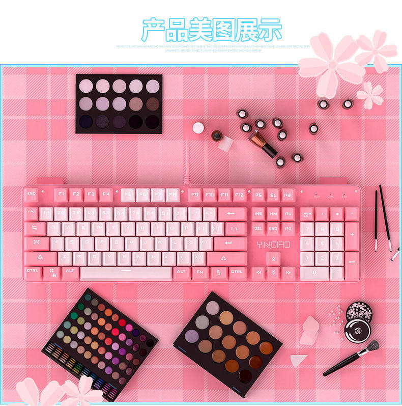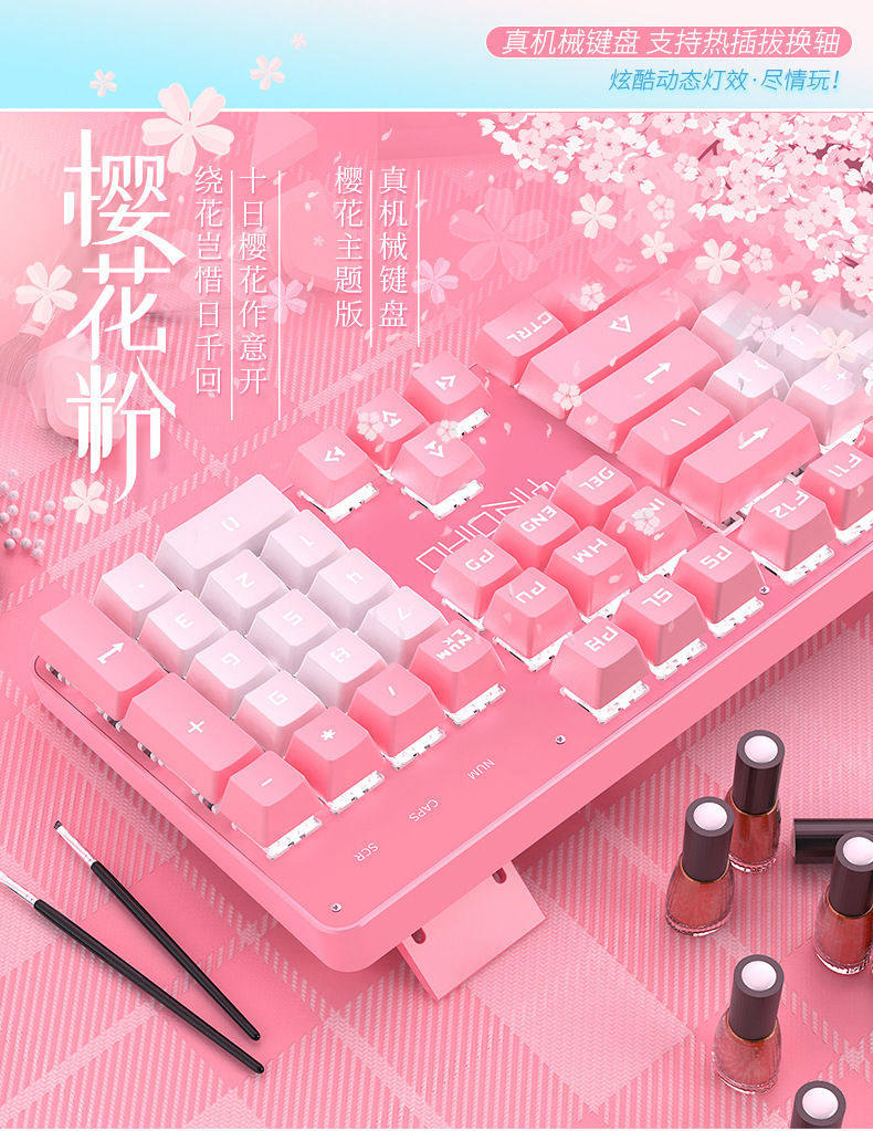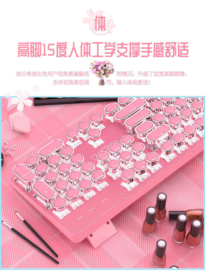 Механическая клавиатура, мышка, розовый комплект, ноутбук, в стиле панк