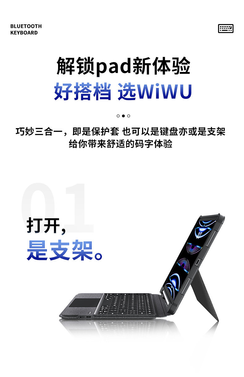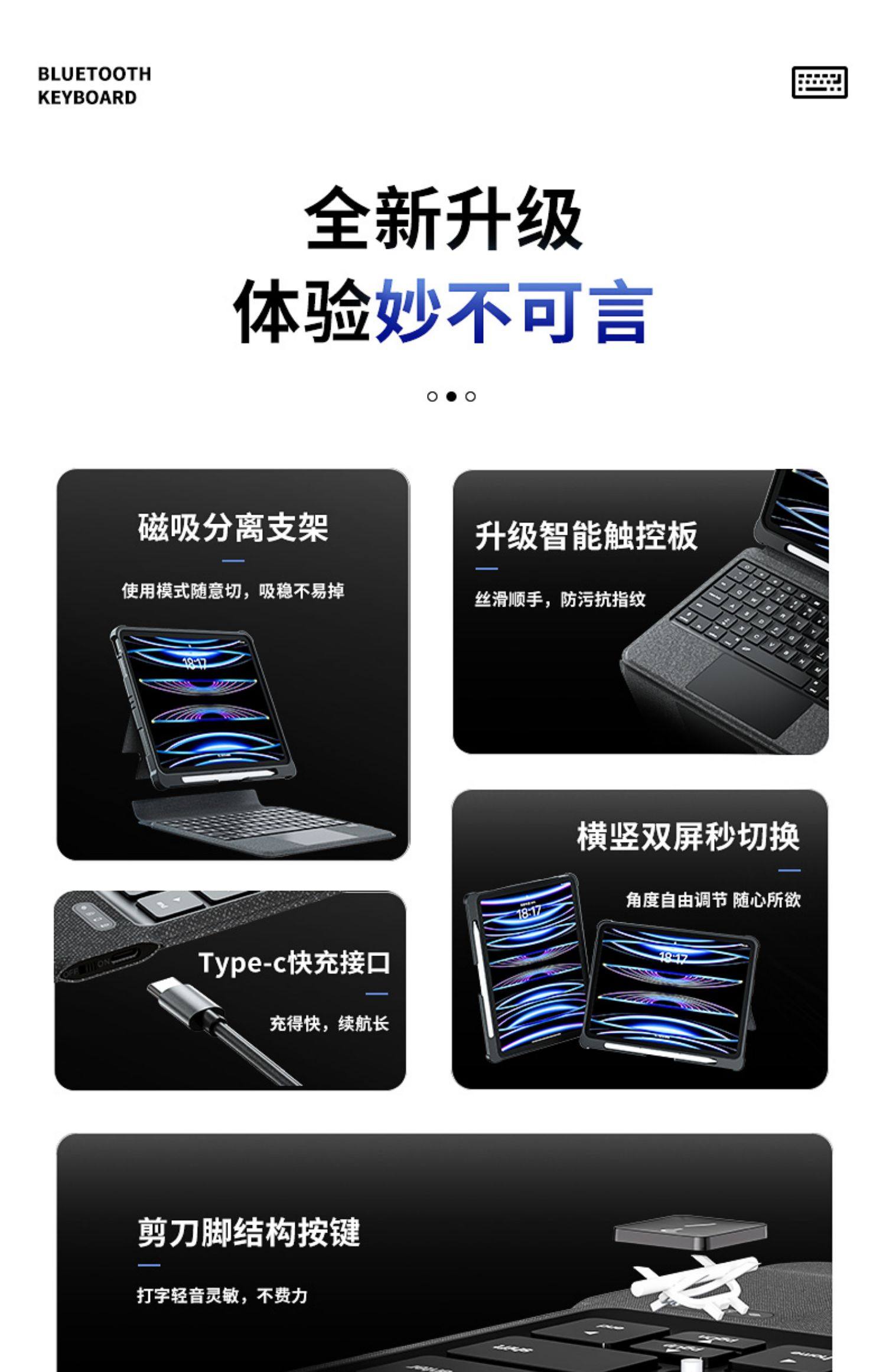 Wiwu Горизонтальное и вертикальное экраново-магическое управление клавиатурой Магнитно-продуманное разделение, подходящее для Apple air6ipad9 Bluetooth Cover Cover Pro11-дюйм 2024.