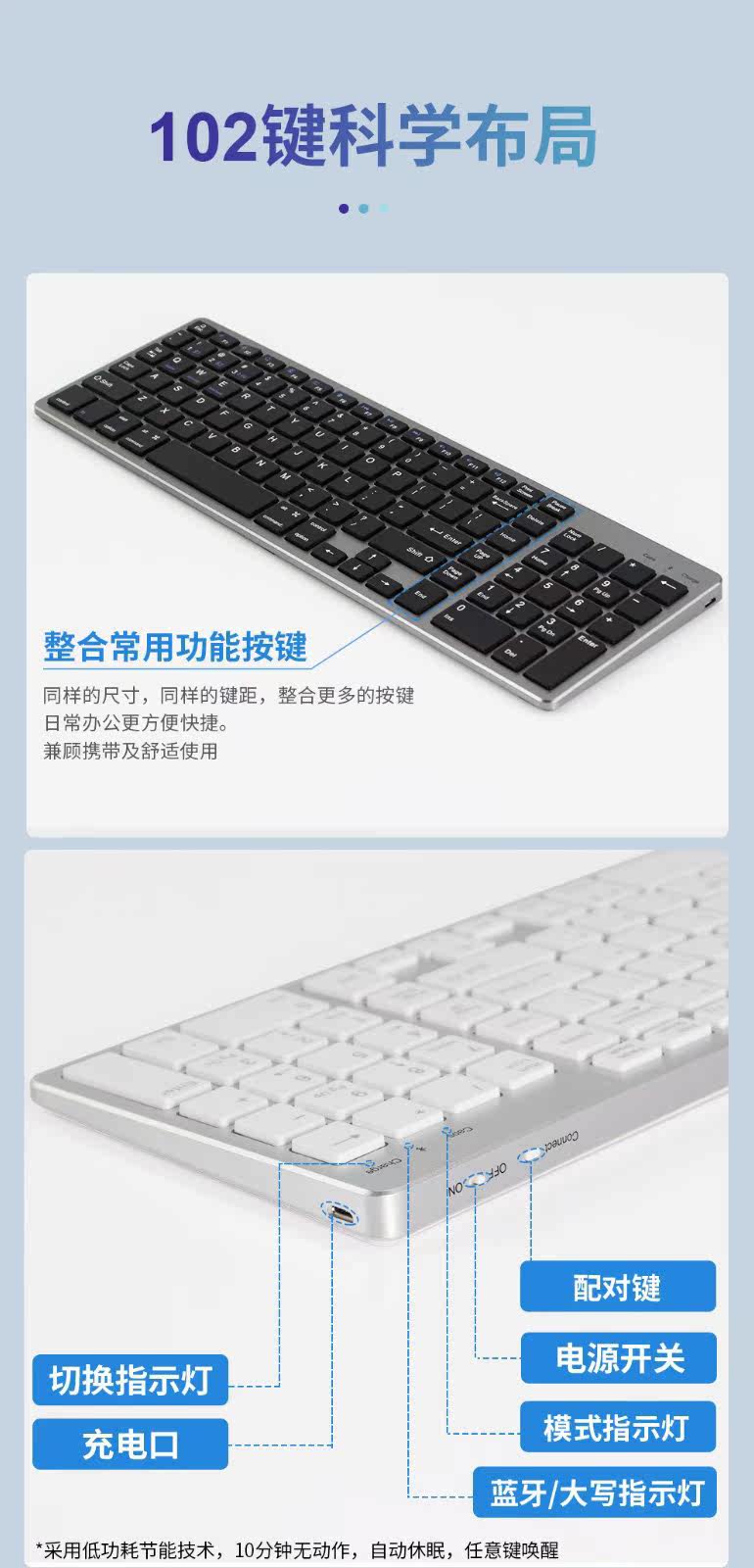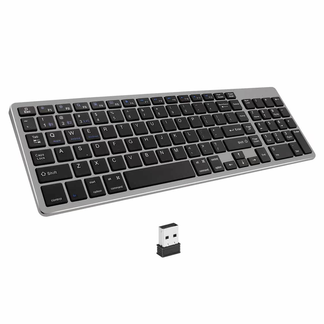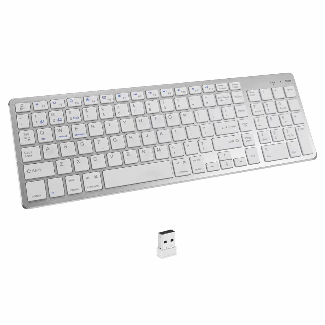 - Серебряная клавиатура с зарядкой, bluetooth