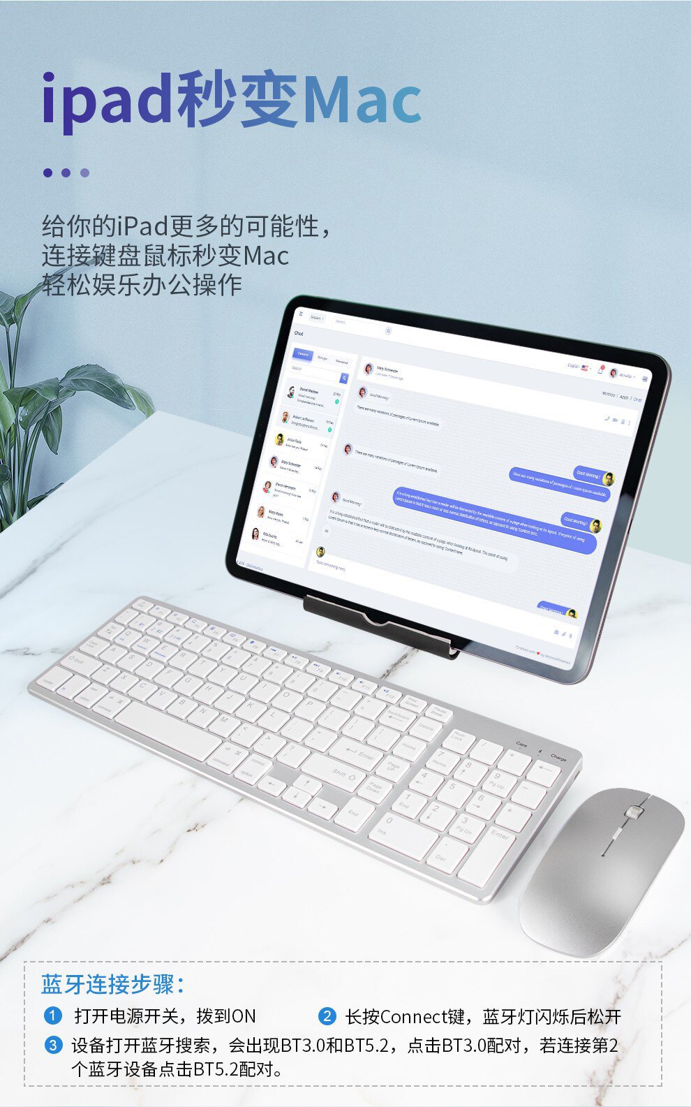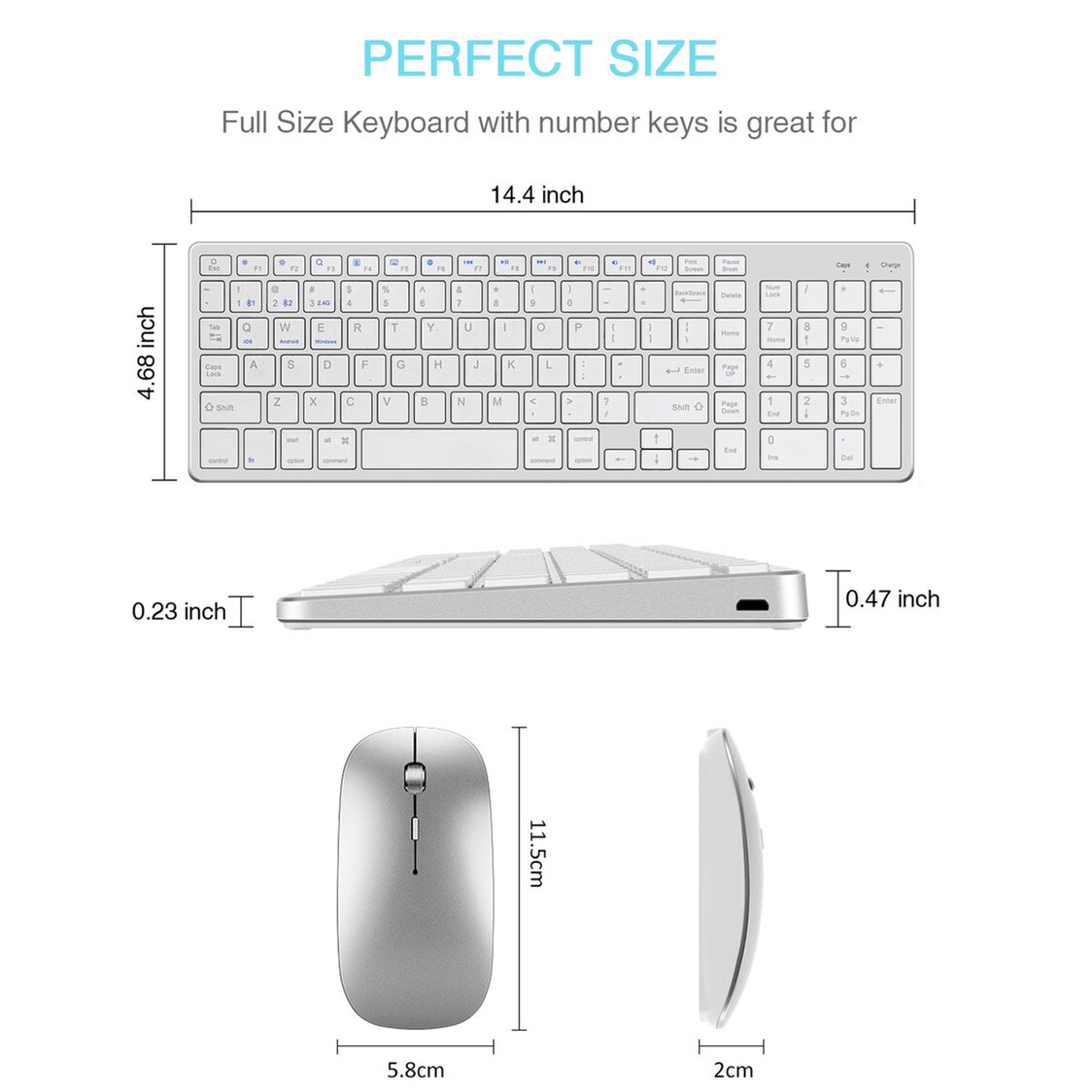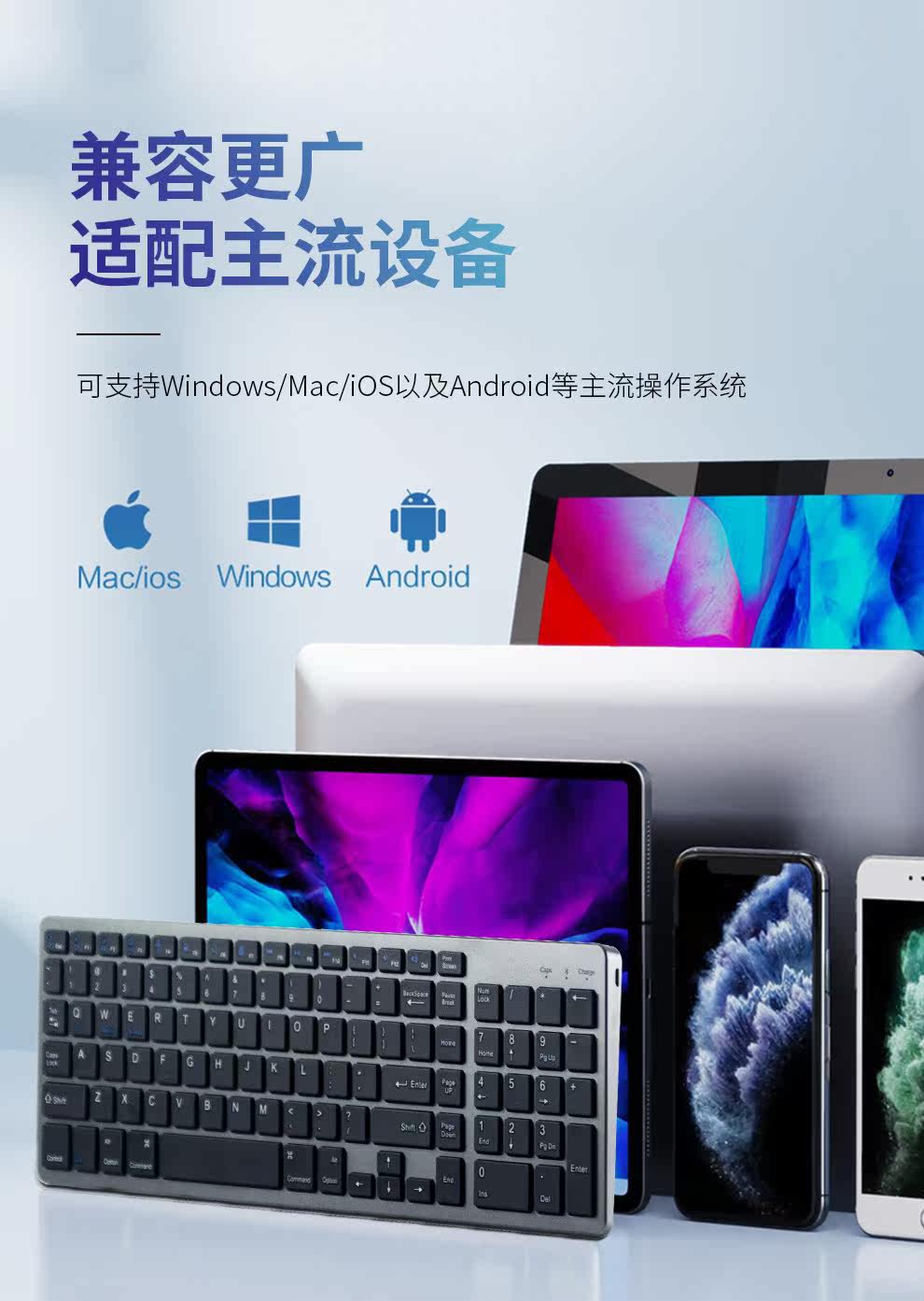 - Серебряная клавиатура с зарядкой, bluetooth