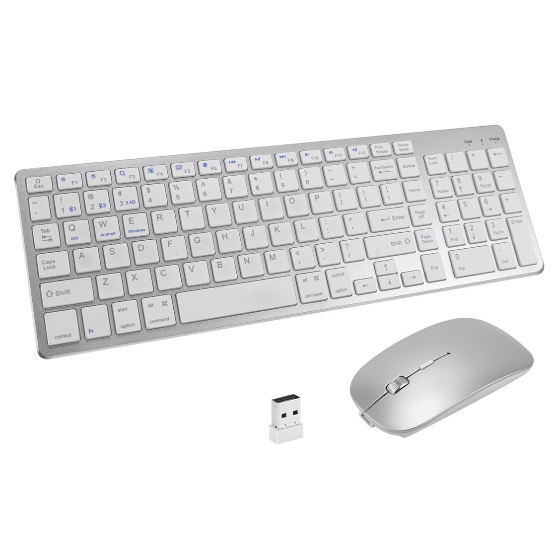 - Беспроводной серебряный комплект с зарядкой