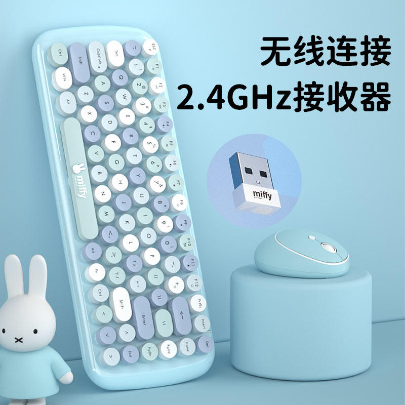 Беспроводная клавиатура, мышка, комплект, мультяшный ретро игровой беззвучный ноутбук, популярно в интернете