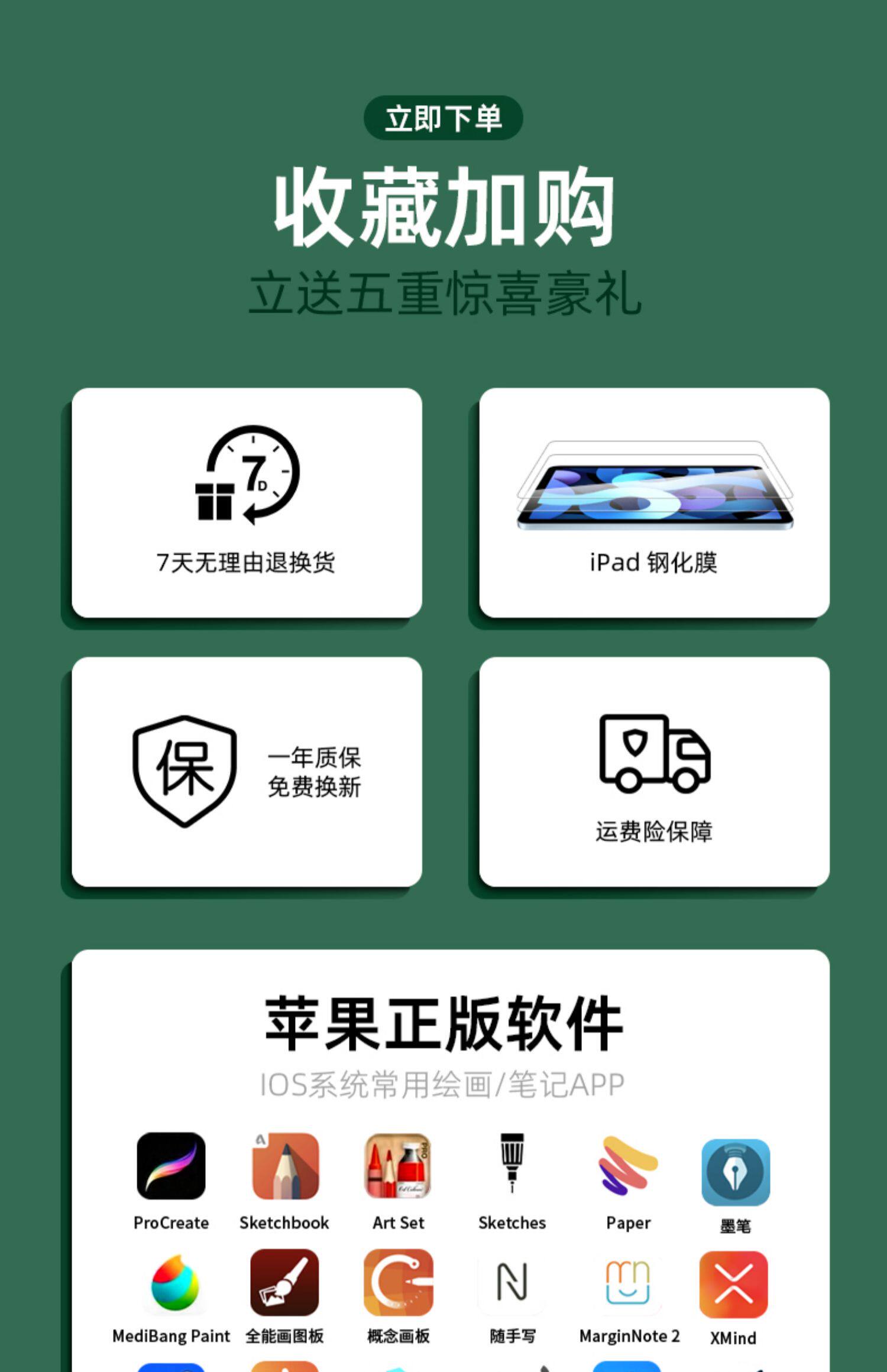 - 10,9 дюйма [подсветка + сенсорная панель + слот для ручки] Отправить закаленную пленку ● Магнитное разделение √ Вертикальная поддержка экрана