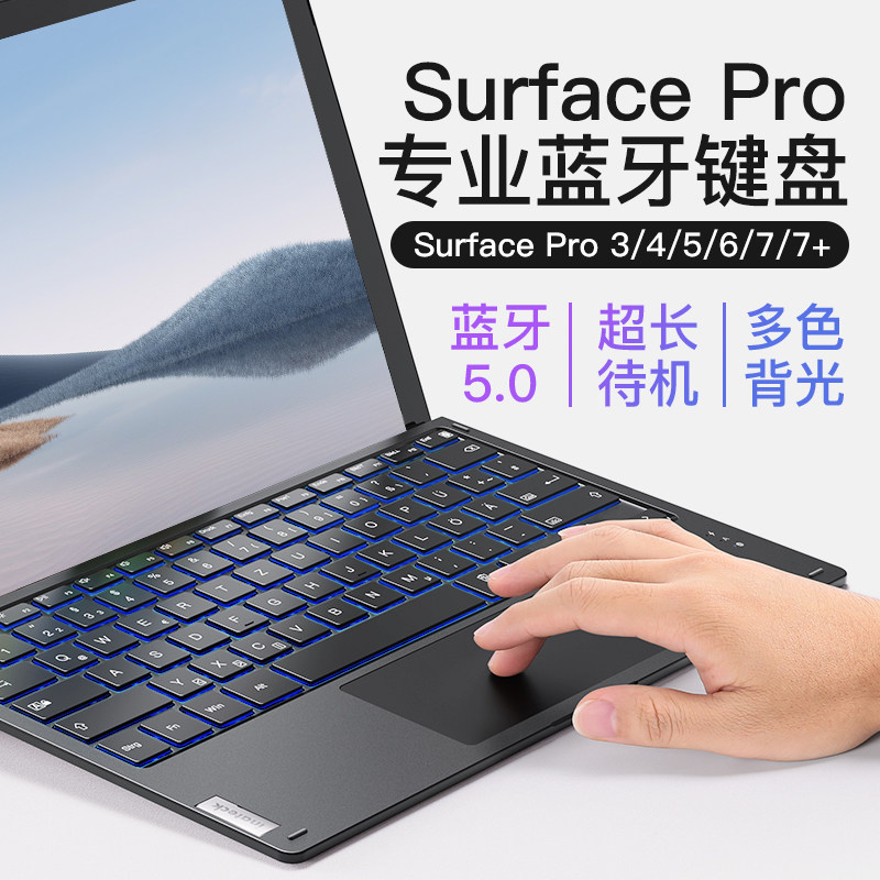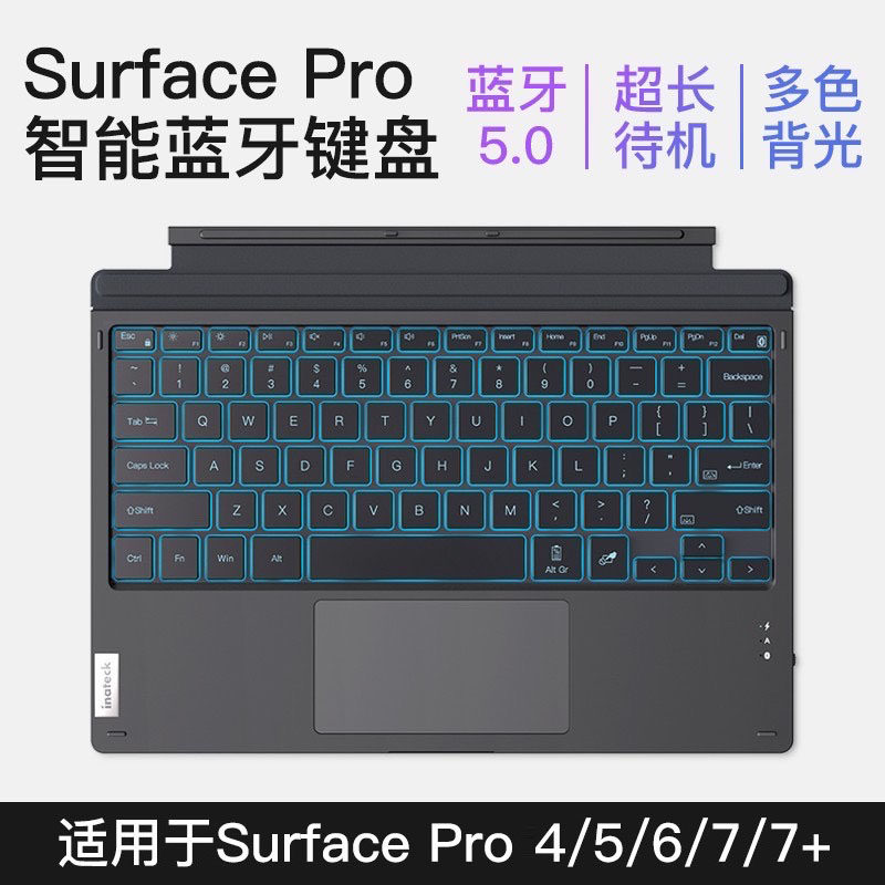 - [Применимая Surface Pro 4/5/6/7/7+] Магнитная сенсорная клавиатура Bluetooth (красочная модель заднего света)