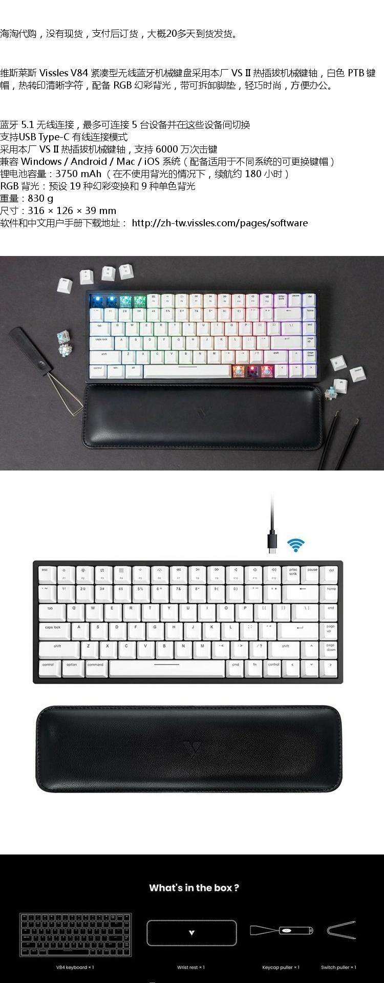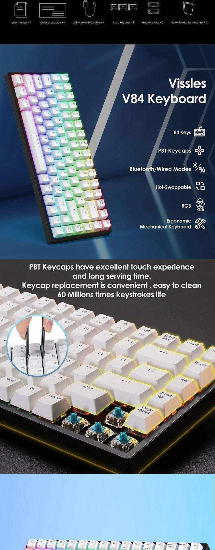 维斯莱斯 Vissles v84 Compact Wireless Bluetooth Механическая клавиатура PTB -клавиш фэнтези -цветной подсвет