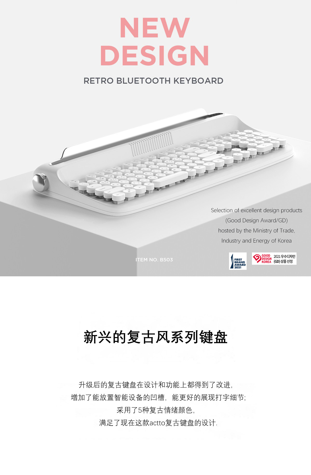 - Pure White B503 English Keycap для отправки Bluetooth Mouse