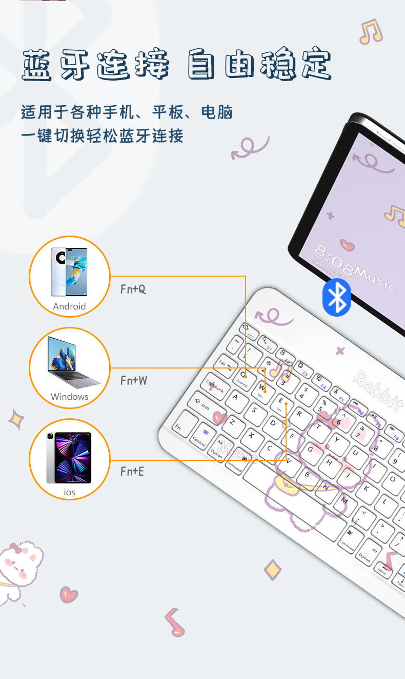 Apple, huawei, xiaomi, lenovo, беспроводная совместимая клавиатура, мышка с зарядкой, комплект, мультяшный милый планшетный маленький беззвучный мобильный телефон, универсальный ноутбук, bluetooth