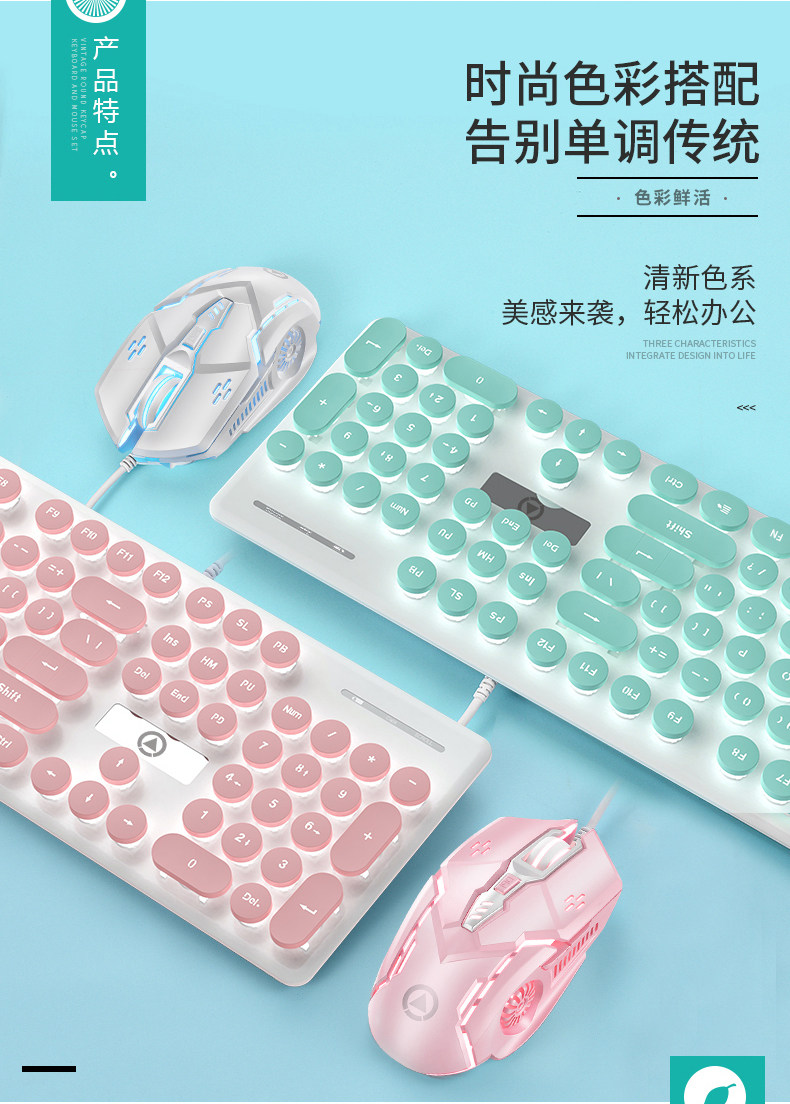 Совместимая механическая клавиатура, мышка, наушники, беззвучный милый комплект для офиса