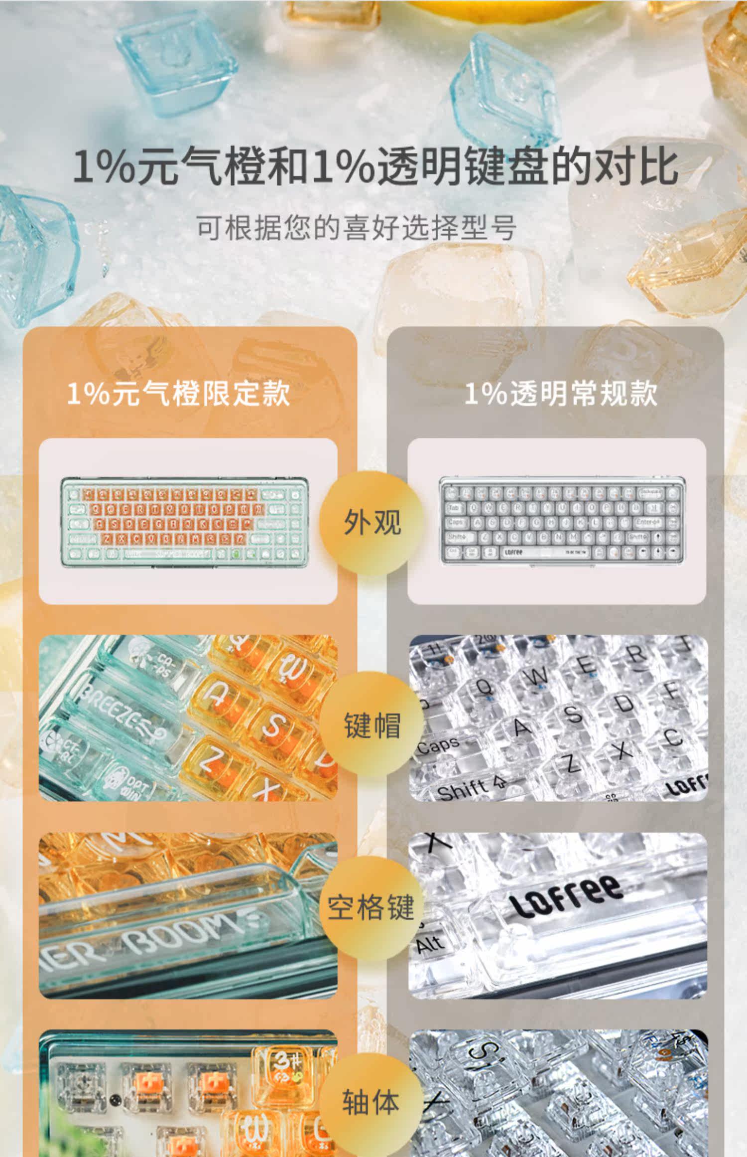 Lofree Luo Fei 1%Прозрачная клавиатура Yuanqi Orange Limited Axis Axis Wireless Bluetooth 68 Клавиатура для отправки мужчин и женщин
