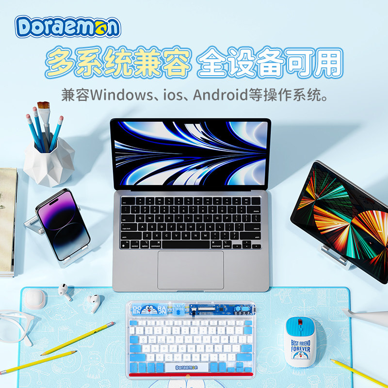 Apple, беспроводная клавиатура, планшетное умное оборудование, легкий и тонкий портативный совместимый ноутбук для офиса, милый комплект, Дораэмон, bluetooth, андроид