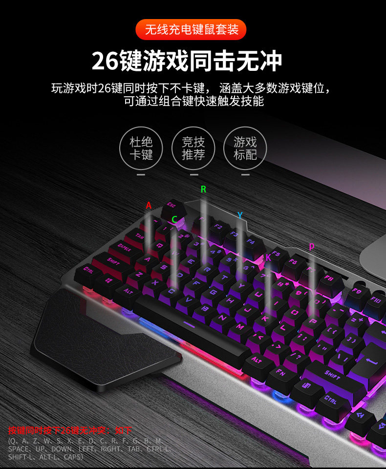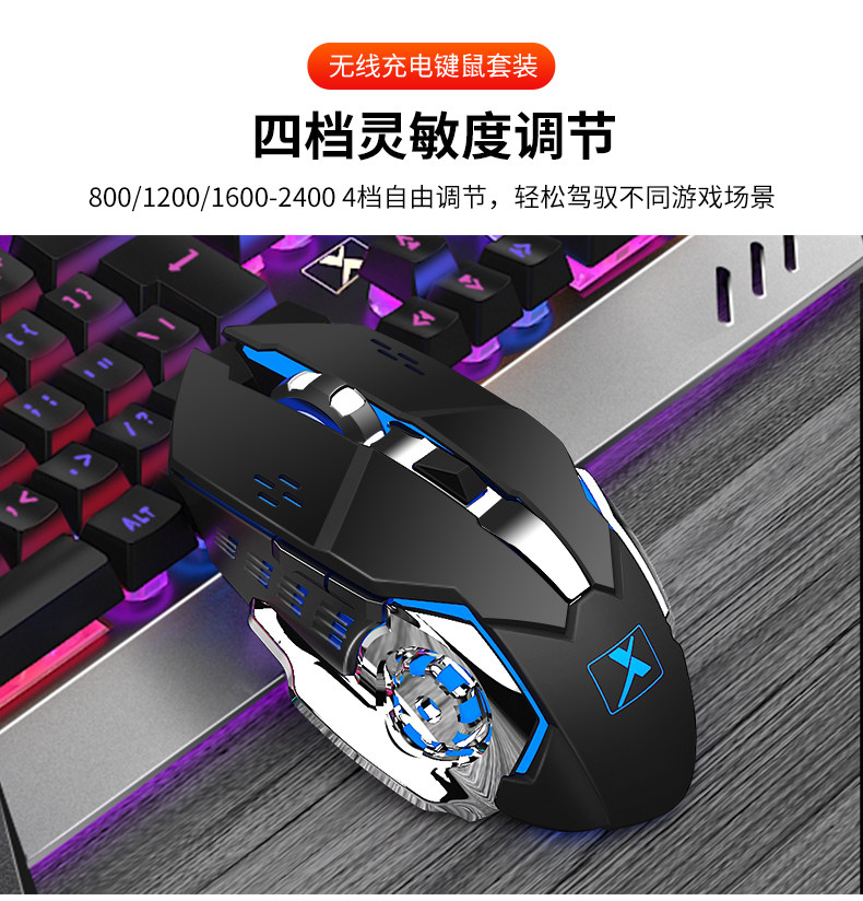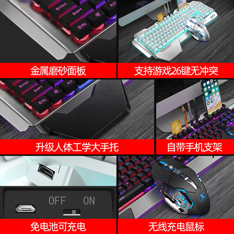 Совместимая механическая беспроводная клавиатура, мышка, игровой комплект с зарядкой, bluetooth