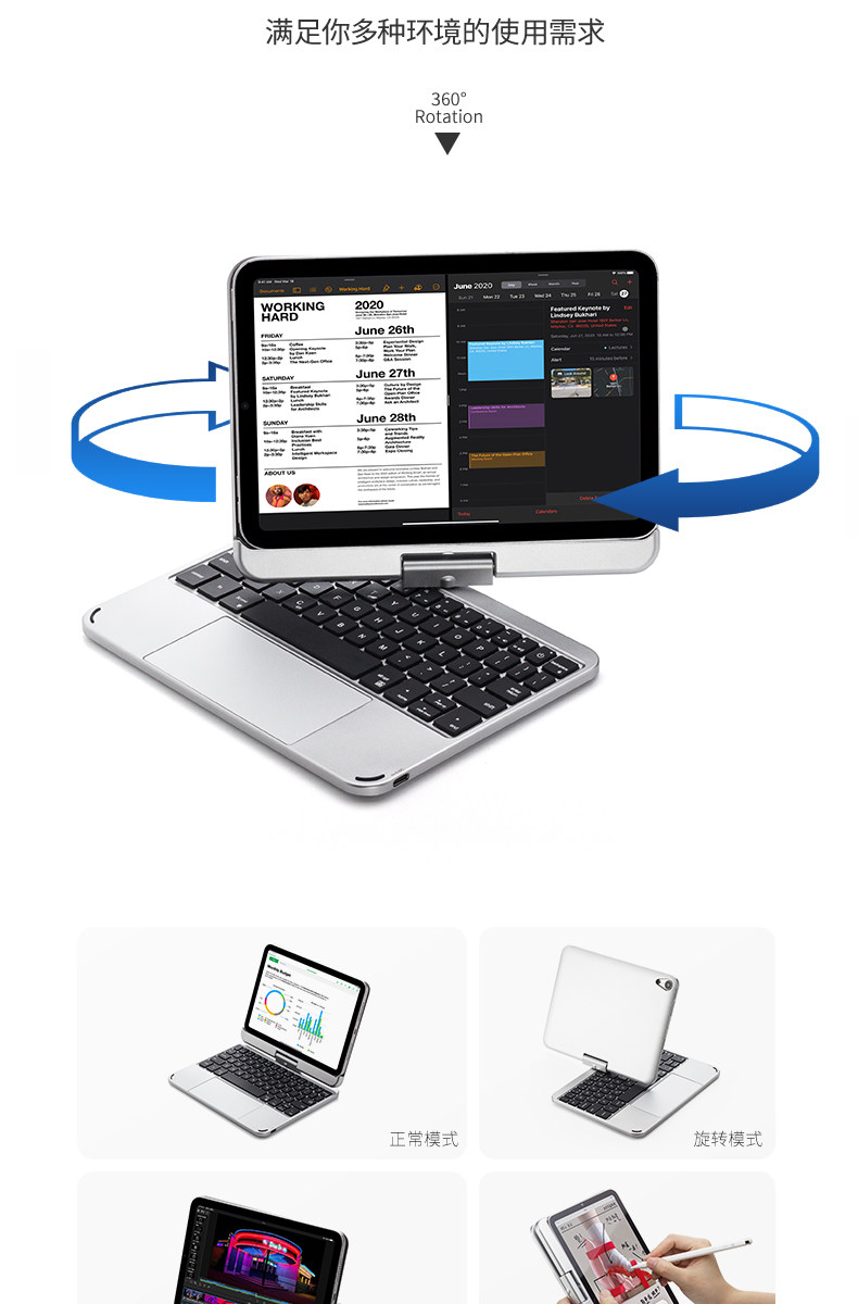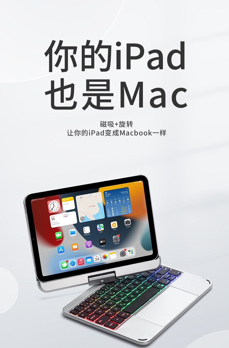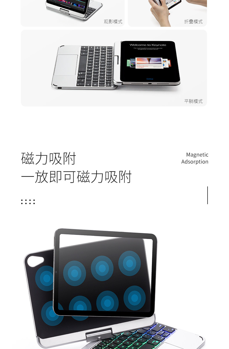 Nabechuan может повернуть iPad Magnetic Control Клавиатура 2024 Apple Air6/5/4 Touchpats Pro11 Tablet Computer Mini7 Выделенный 13 Bluetooth Mouse набор 12.9