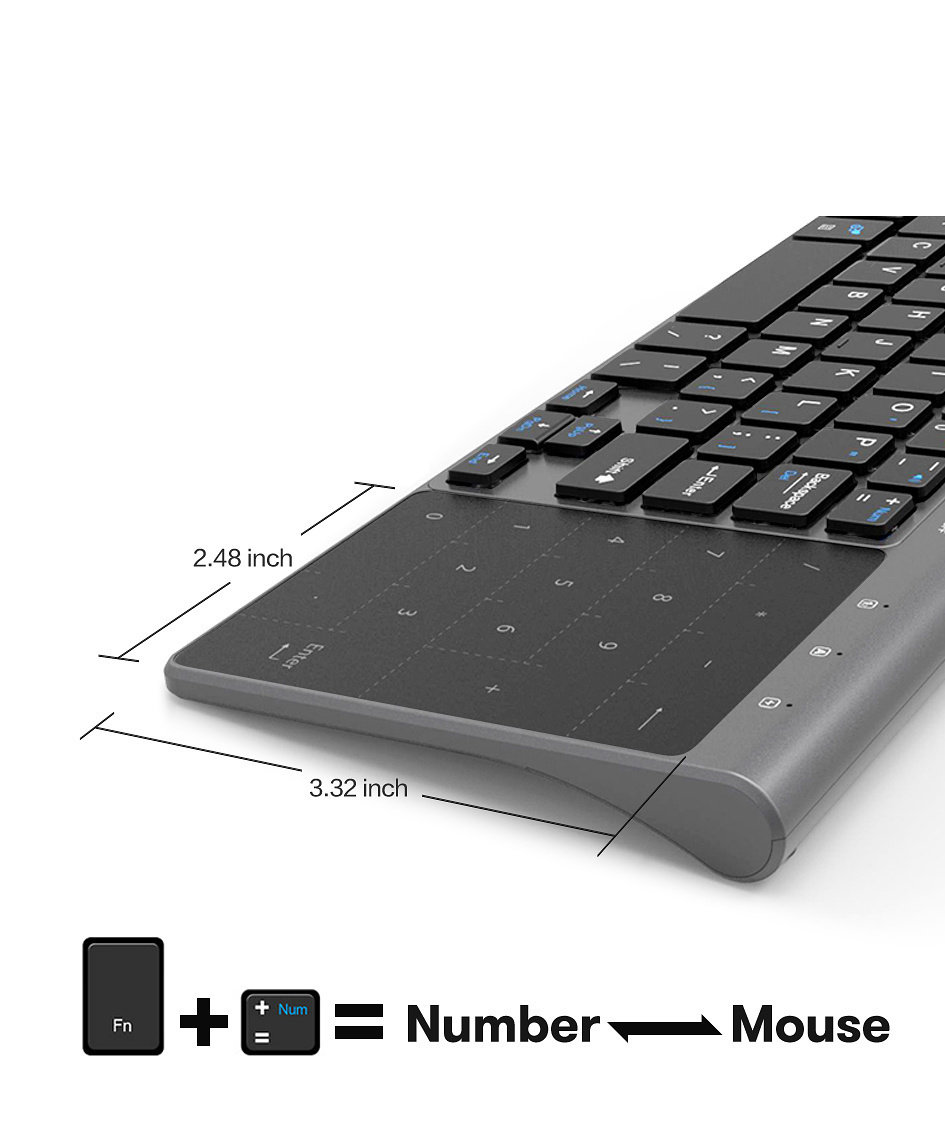 Slim 2,4G беспроводная клавиатура с номером мыши с сенсорной панелью
