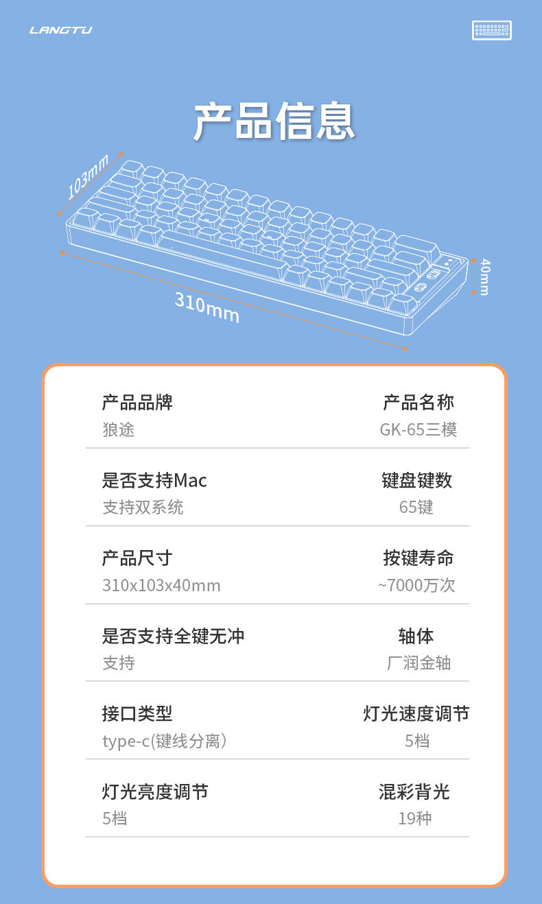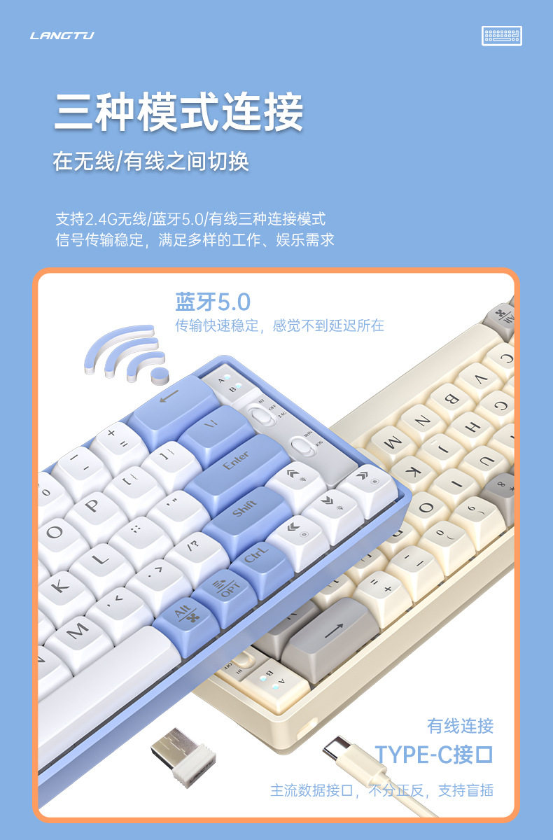 GK65 Механическая клавиатура беспроводная игровая проволока Bluetooth -клавиатура