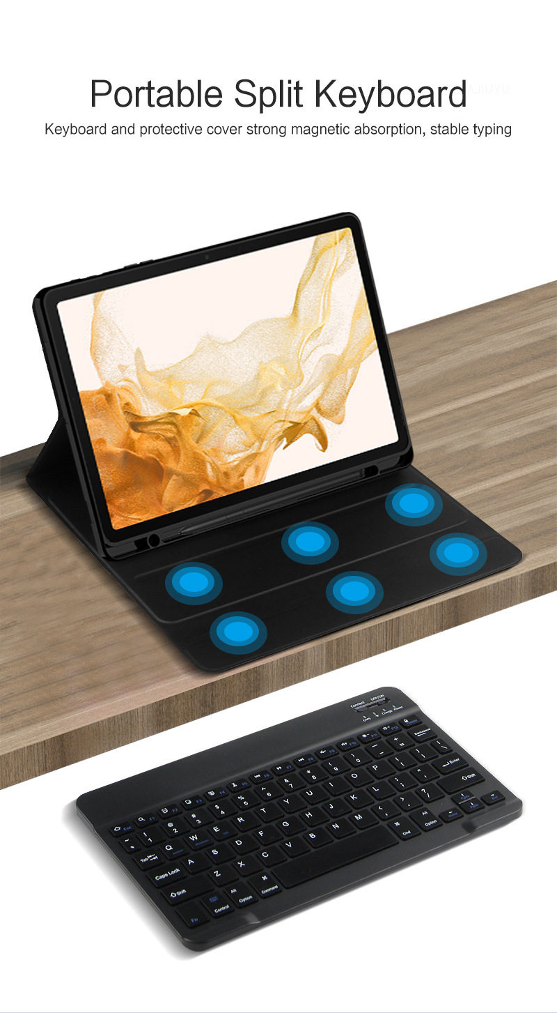 - Черный кожаный чехол + бессенсорная Bluetooth-клавиатура Galaxy tab S7FE/S7+/S8+