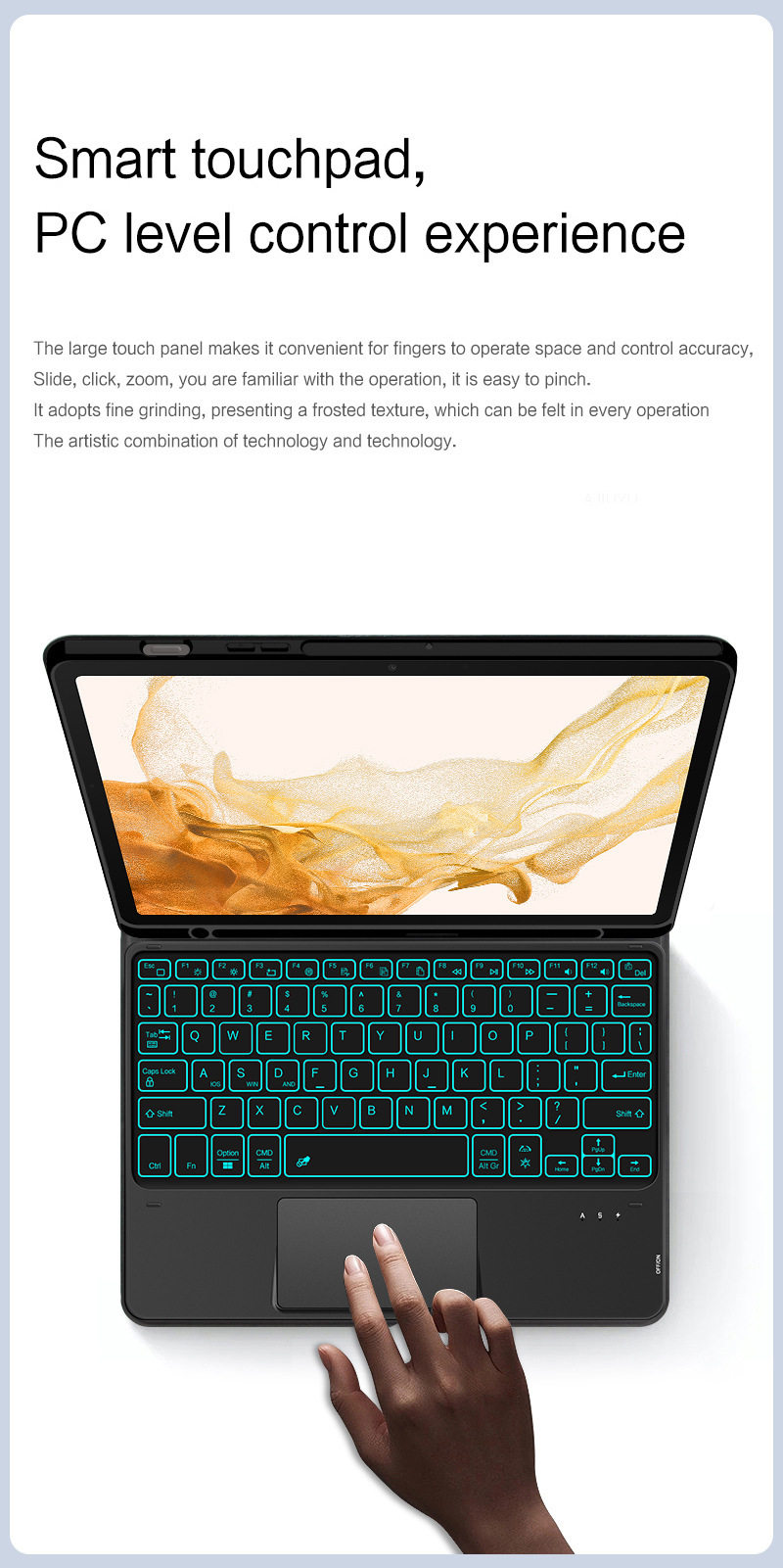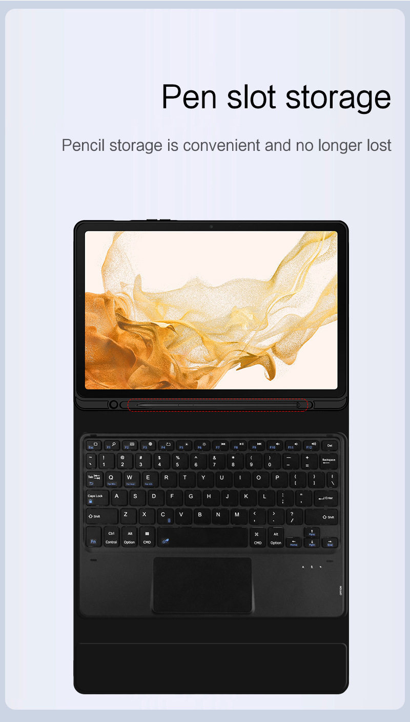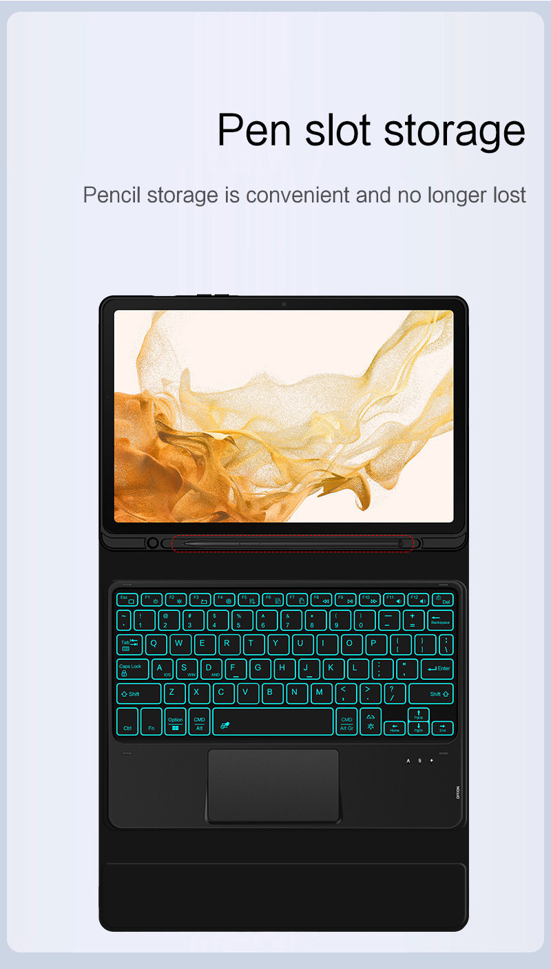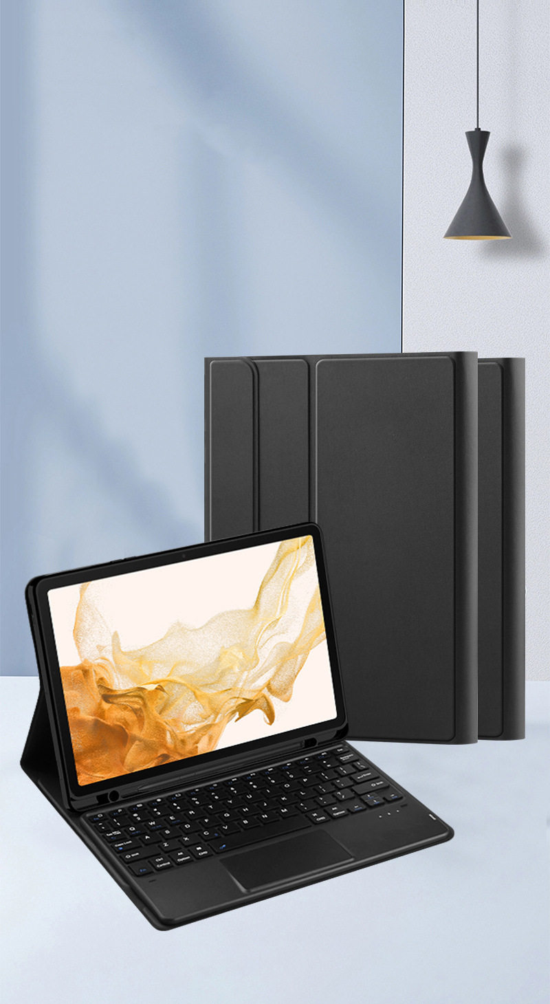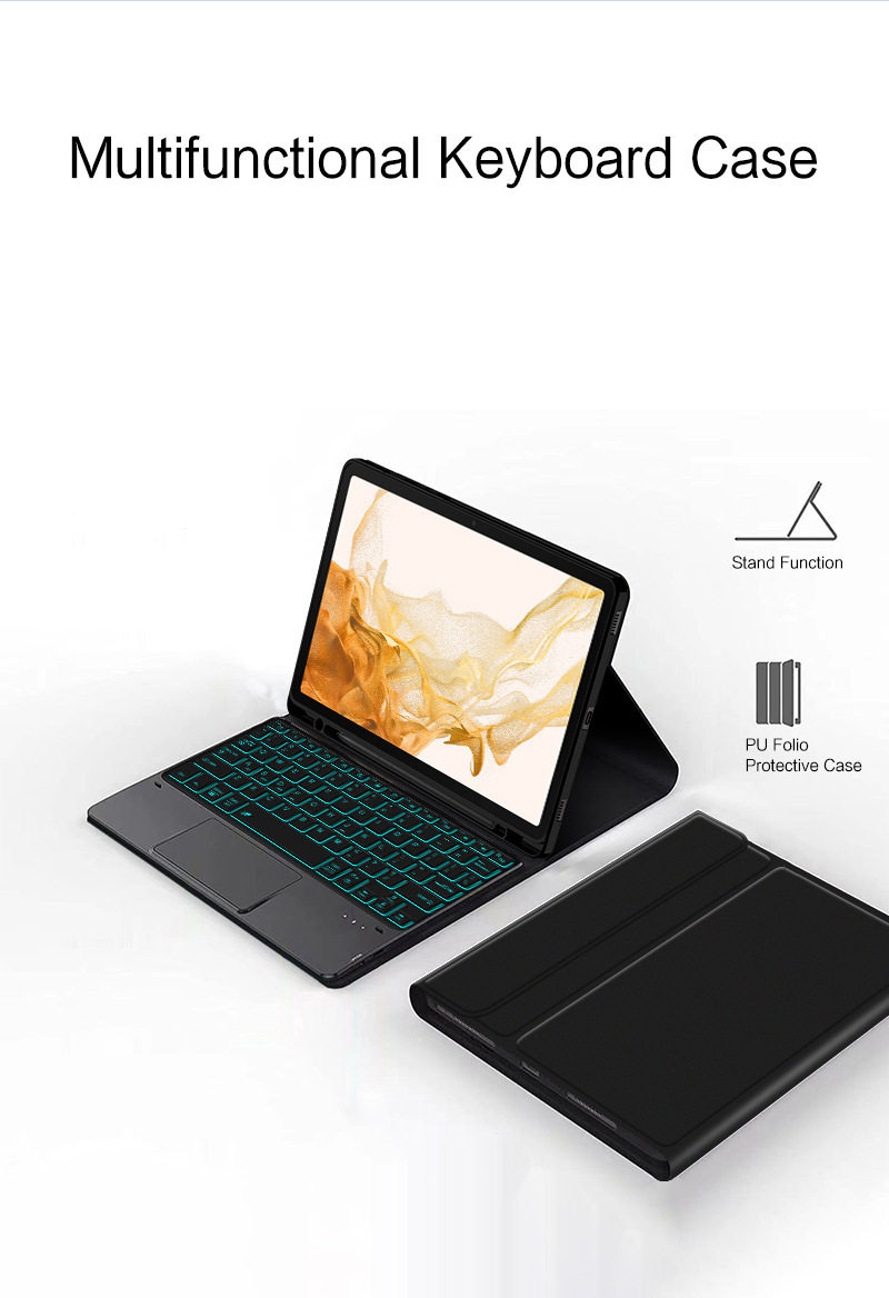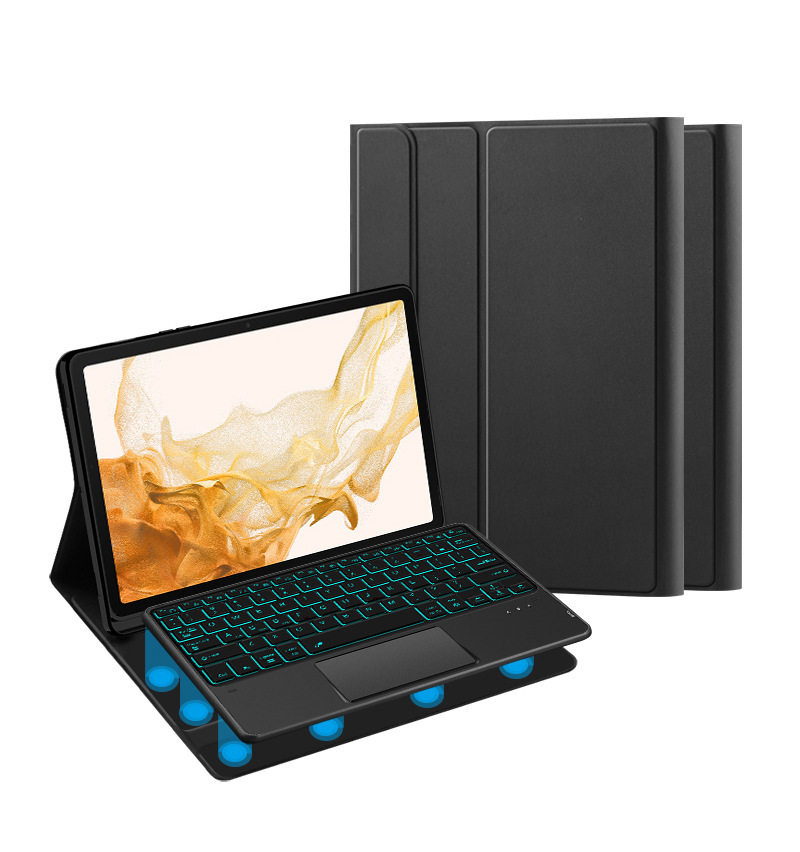 - Черный кожаный чехол + сенсорная Bluetooth-клавиатура с подсветкой Galaxy tab S7FE/S7+/S8+