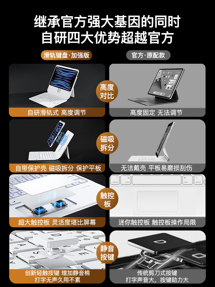- IPad Pro18/20/21/22 (12,9 дюйма) Официальная белая ★ Собственная скользкая рельса ★ 360 ° Горизонтальная и вертикальная опора