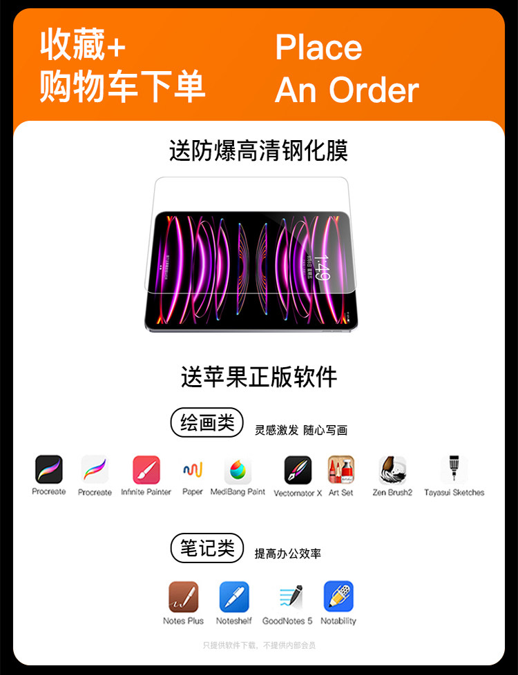 - IPad Pro18/20/21/22 (12,9 дюйма) Официальный черный ★ Подвешенный скользкий рельс ★ 360 ° Горизонтальная и вертикальная поддержка