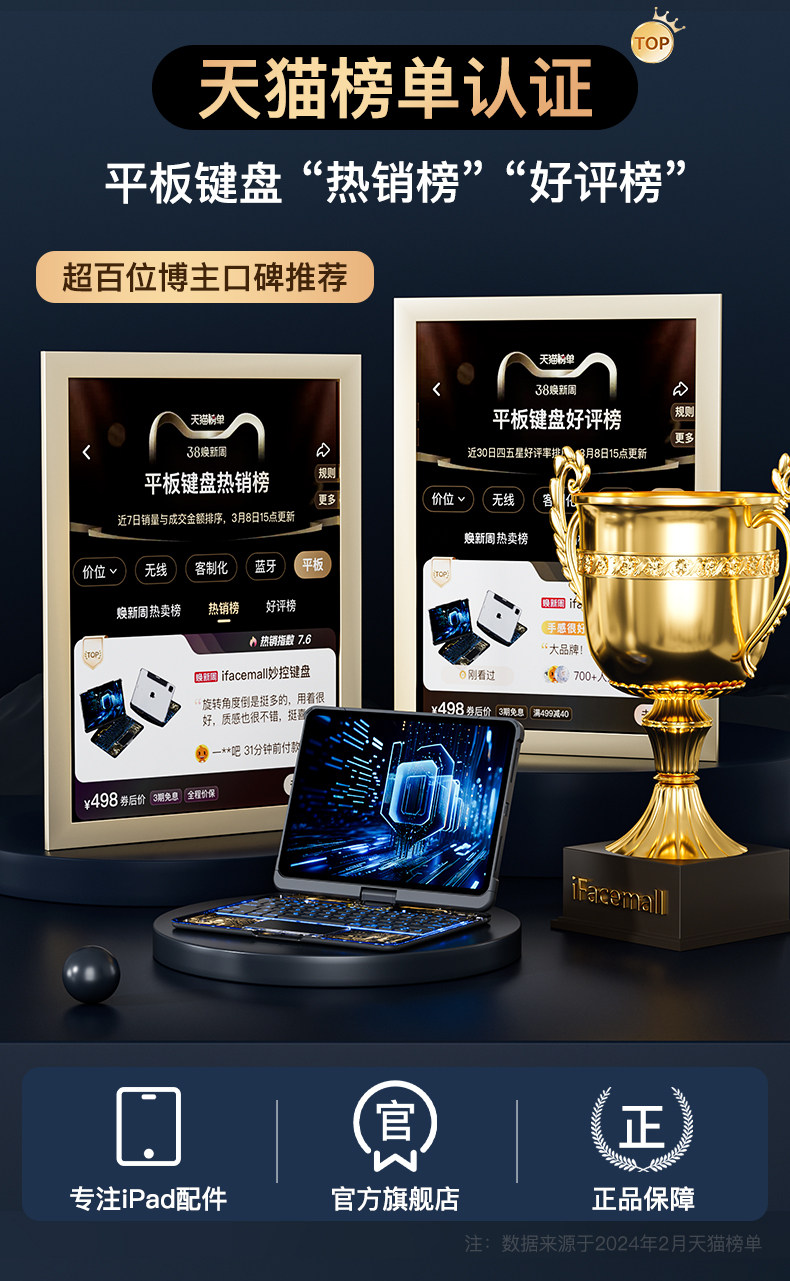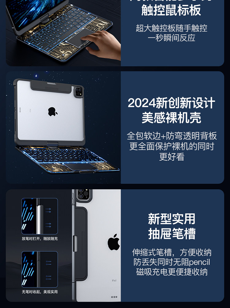 IfaceMall подходит для Apple iPad Miao Control Клавиатура, чтобы повернуть 2024 Новый Pro11 -дюйм All -In -One Air6 Tablet 5 Специальная интеллектуальная защитная крышка Mini7 Shell 12.9 беспроводной Bluetooth Second Touch