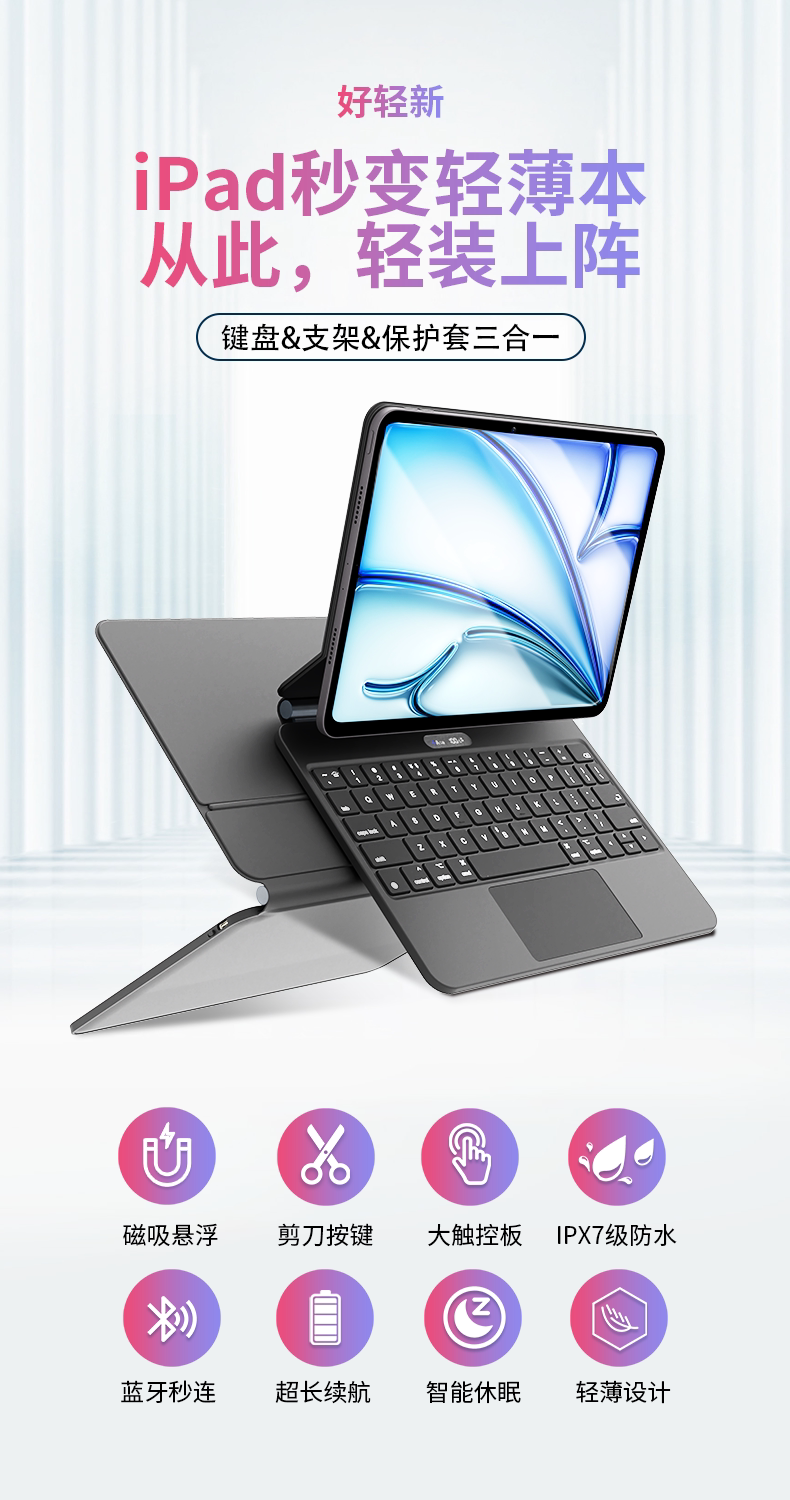 酷士达 Клавиатура iPad Magic Keyboard подходит для защитного чехла для планшета Apple ipad air6 pro с Bluetooth Air5, магнитного моноблока «все в одном», 4 беспроводных 13-дюймовых клавиатурных панелей, защитный чехол 10-го поколения, модель 2024 года.