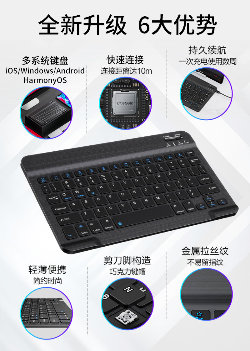Беспроводная клавиатура с зарядкой, мышка, легкий портативный совместимый комплект, планшетный мобильный телефон, ноутбук, 10 дюймов, bluetooth