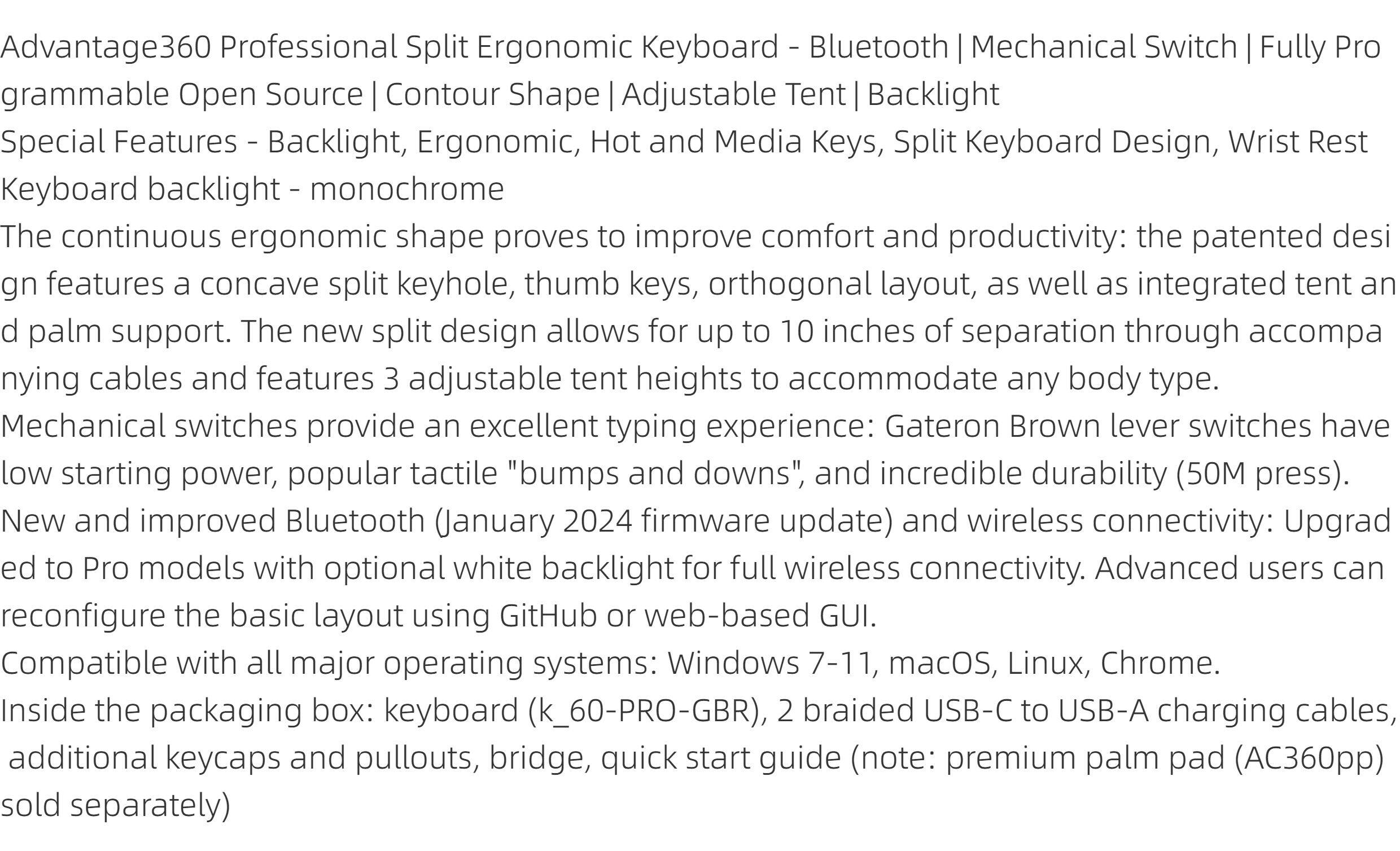 KINESIS Advantage360 Беспроводная Bluetooth-механическая клавиатура Профессиональный двухсекционный программируемый дизайн Новый стиль