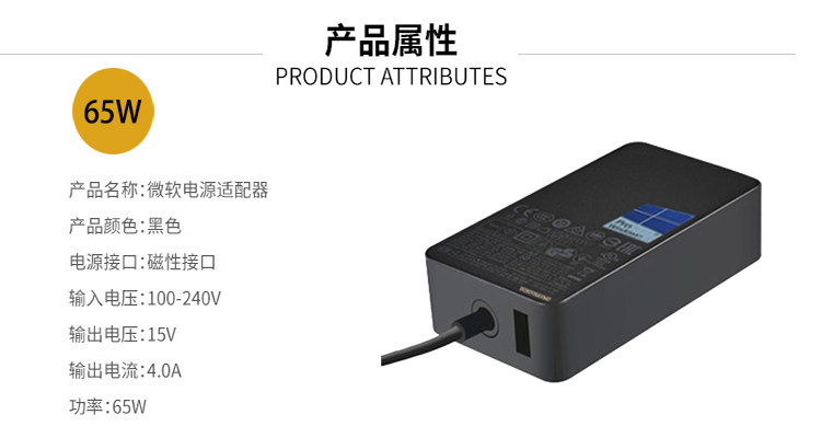 Планшетное зарядное устройство, ноутбук, блок питания, 65W, surface book, pro3, 4/5/6/7