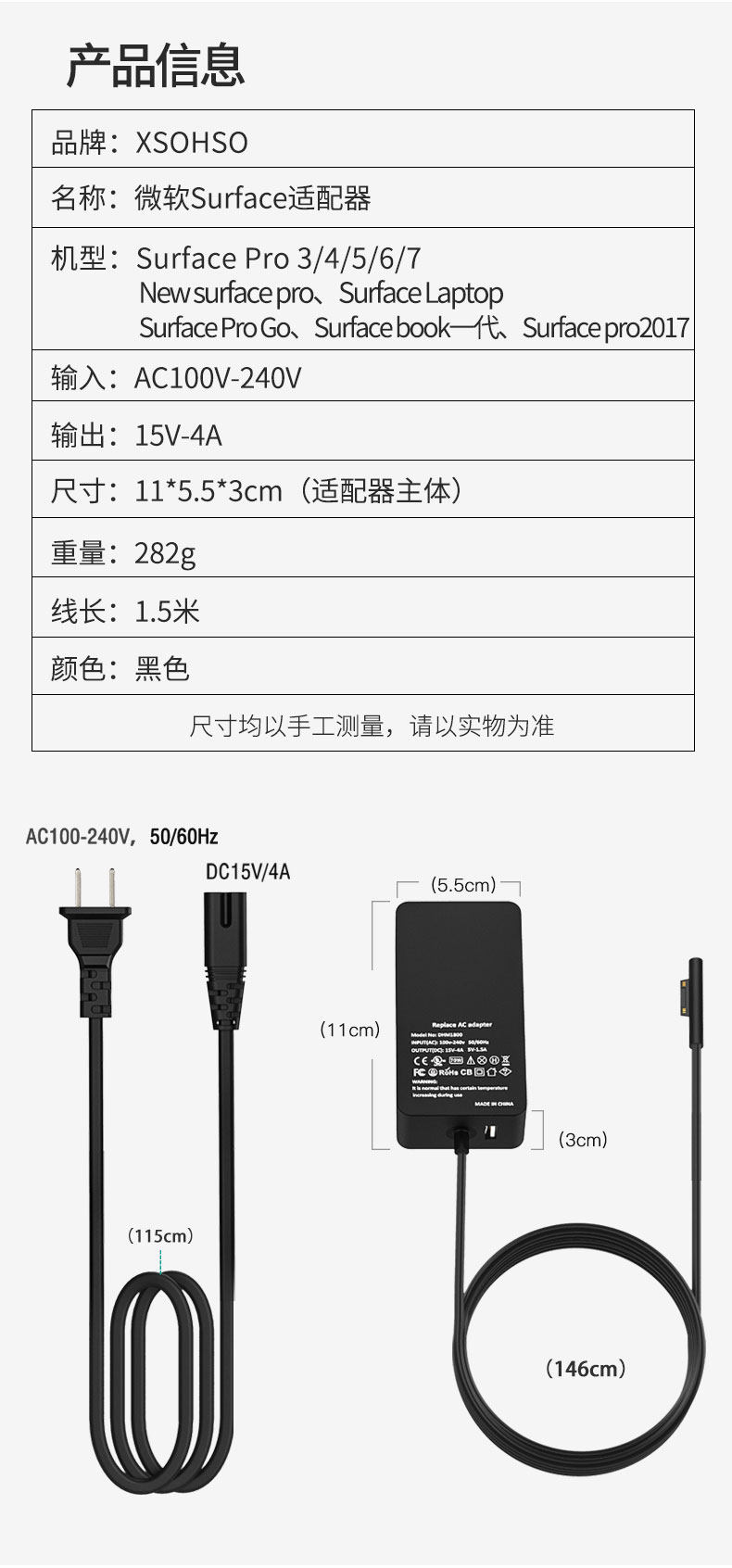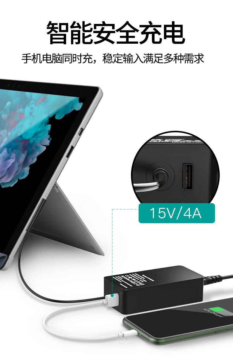 Совместимое зарядное устройство, адаптеры питания, планшетный ноутбук, зарядный кабель, pro6, pro5, pro4, pro3, pro8, 7, 65W