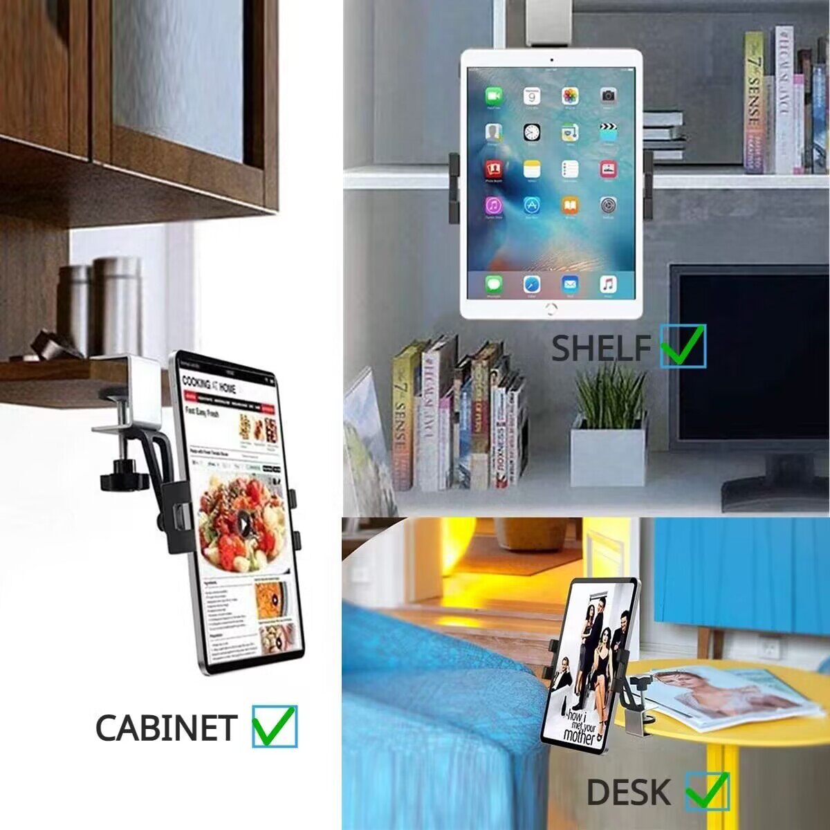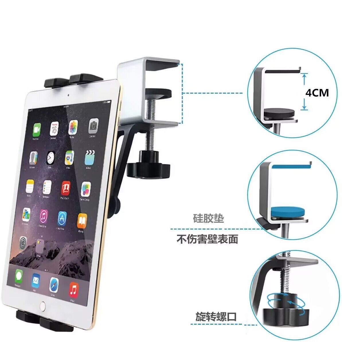 Встроенный кронштейн для настенного шкафа, настольной полки для планшета iPad, вращающийся на 360 ° зажим для поддержки воспроизведения видео