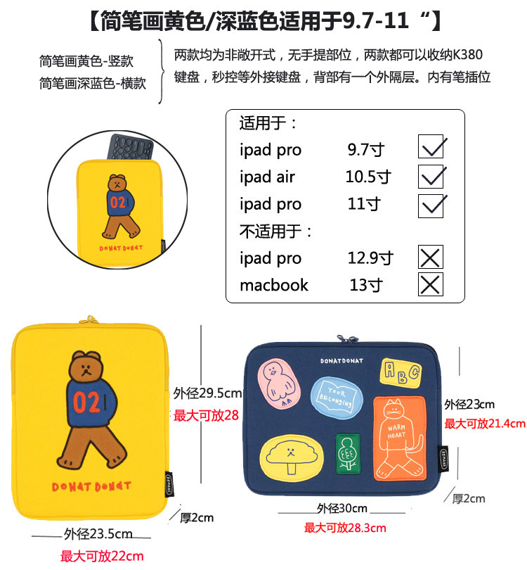 Милый планшетный вкладыш, ноутбук для документов, 11 дюймов, 13 дюймов