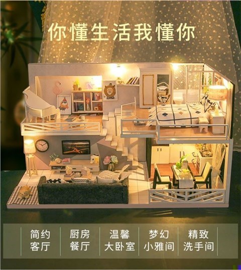 Хижина, деревянный домик, маленький конструктор, вилла для влюбленных, DIY, домик своими руками, подарок на день рождения