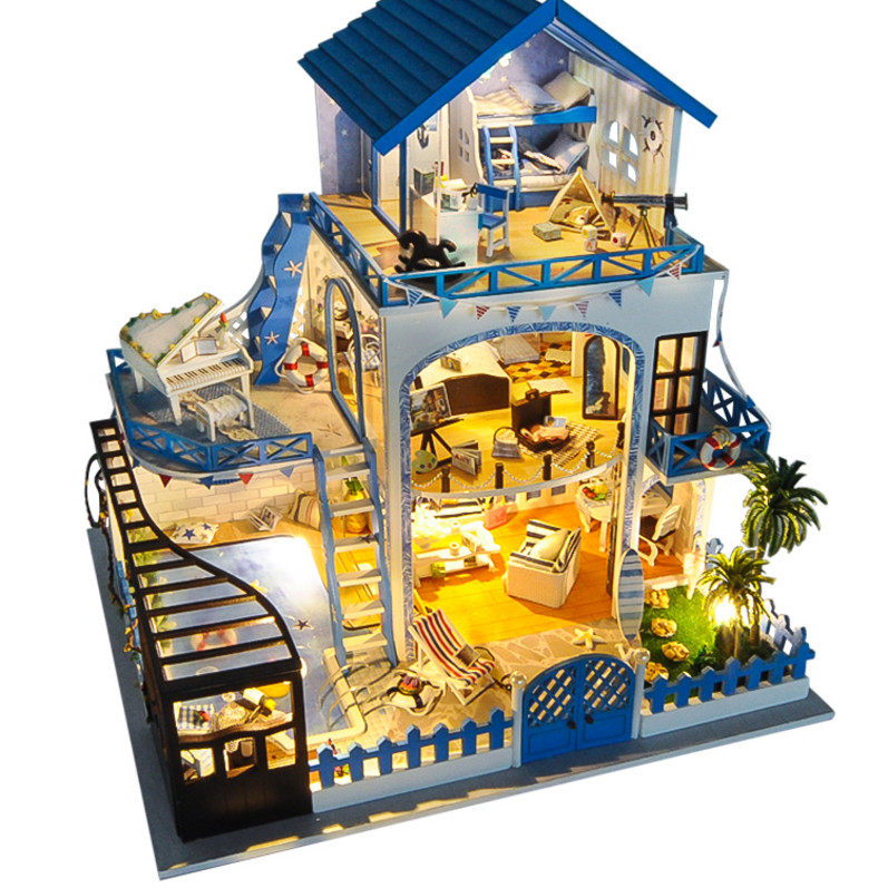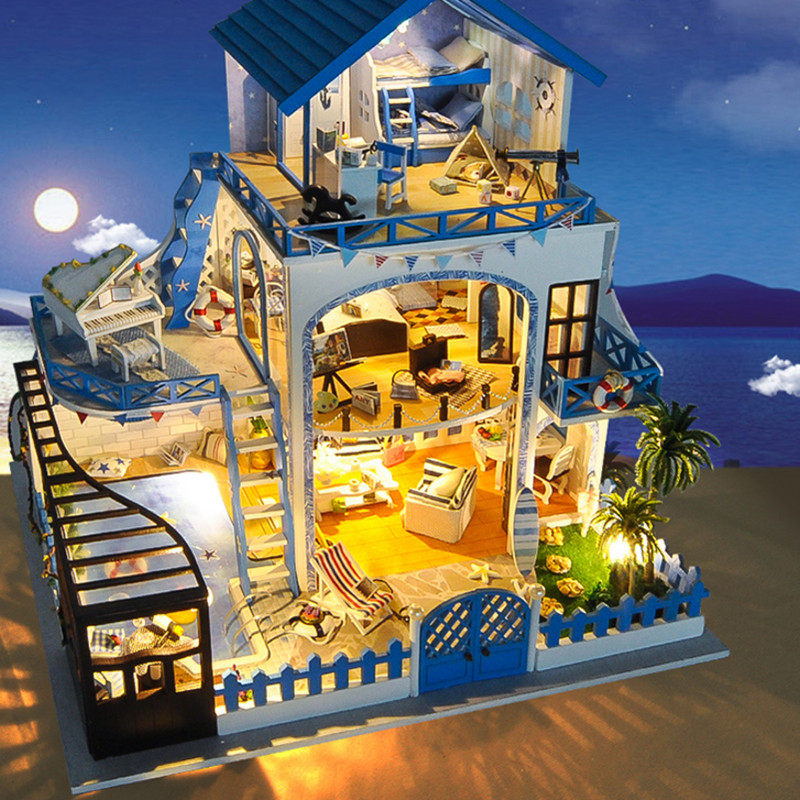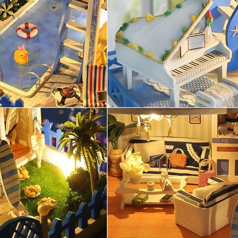 Маленький домик, вилла, хижина, деревянный конструктор, игрушка, DIY, домик своими руками, подарок на день рождения
