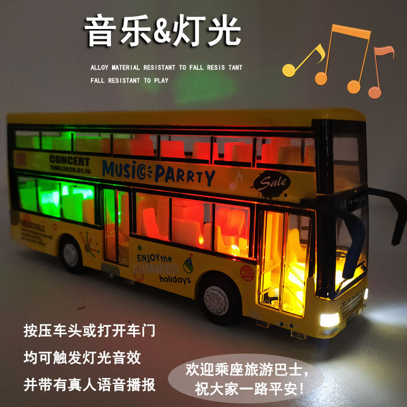 Металлическая реалистичная общественная модель автомобиля, двухэтажный автобус, игрушка для мальчиков