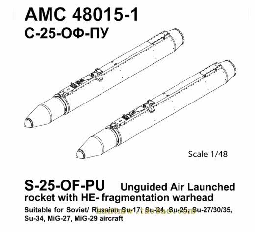 AMPC48015-1 Советский S-25-OF-PU-воздушный воздух неконтролируемая ракета 1/48 модель сборки смолы 1/48 S-25-of-Pu Ungered Air-laun.Rocket