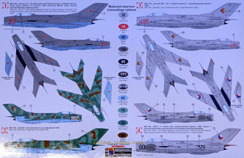KPM-72187 Huali ВВС MIG 19/MIG-19S Fighter 1/72 Модель пластиковой сборки 4 Выбор краски