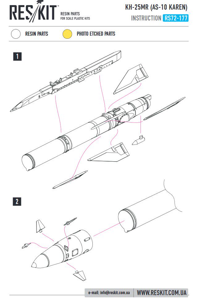 RESKIT 720177 1/72 KH-25MR AS-10 Келленская смола ракета и висящая рама APU-68